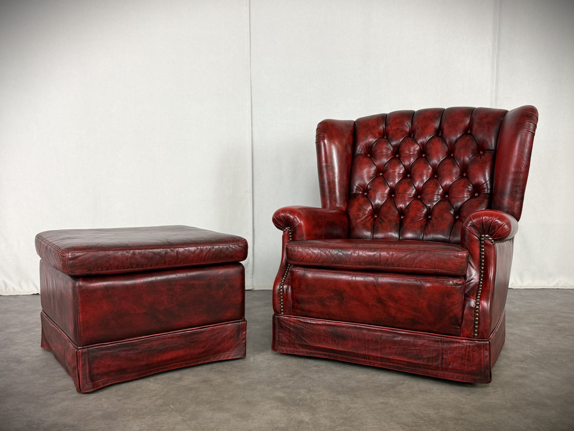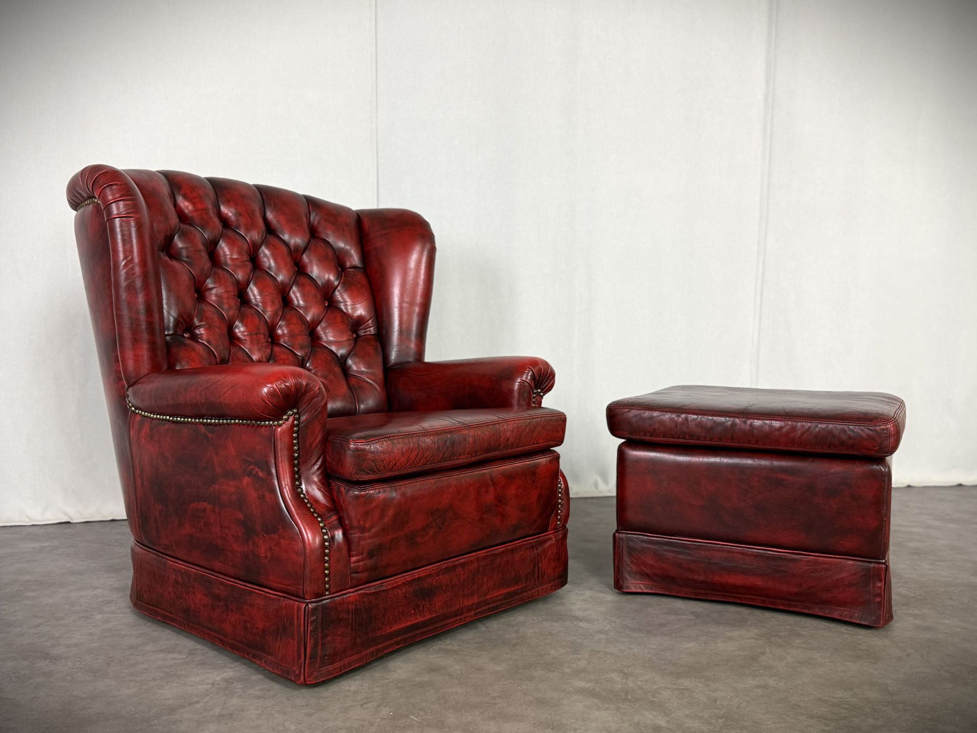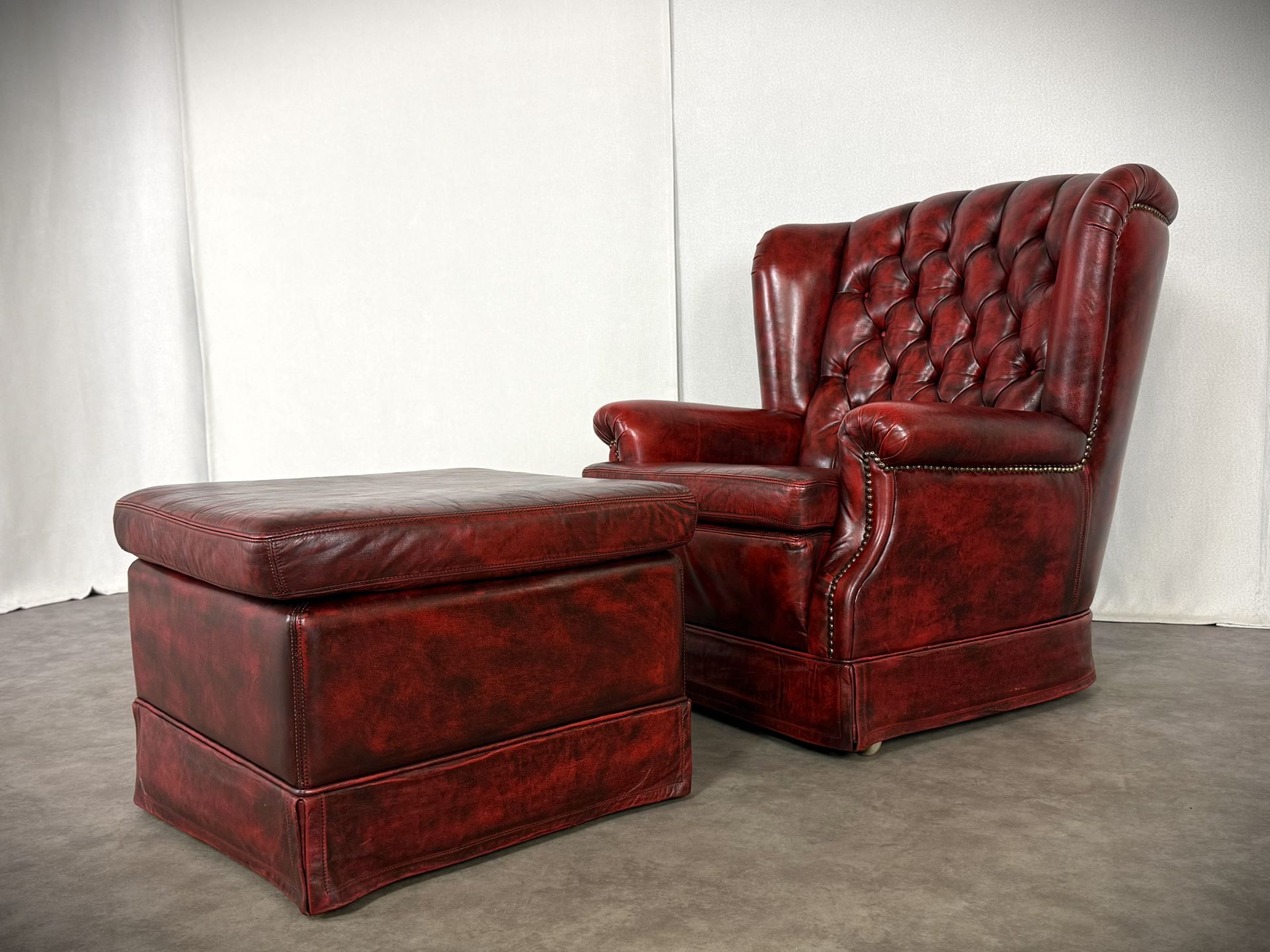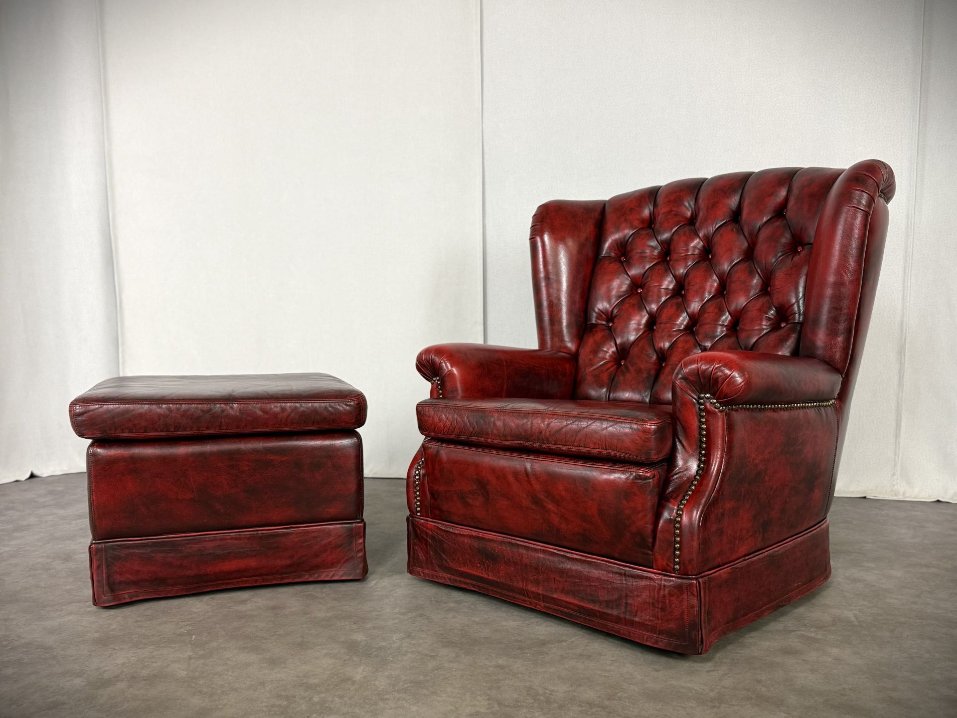 Exklusives Set: Original Vintage, Chesterfield Bradford Sessel mit Ottoman in tiefem Oxblood. Eleganz aus den 1960er Jahren!