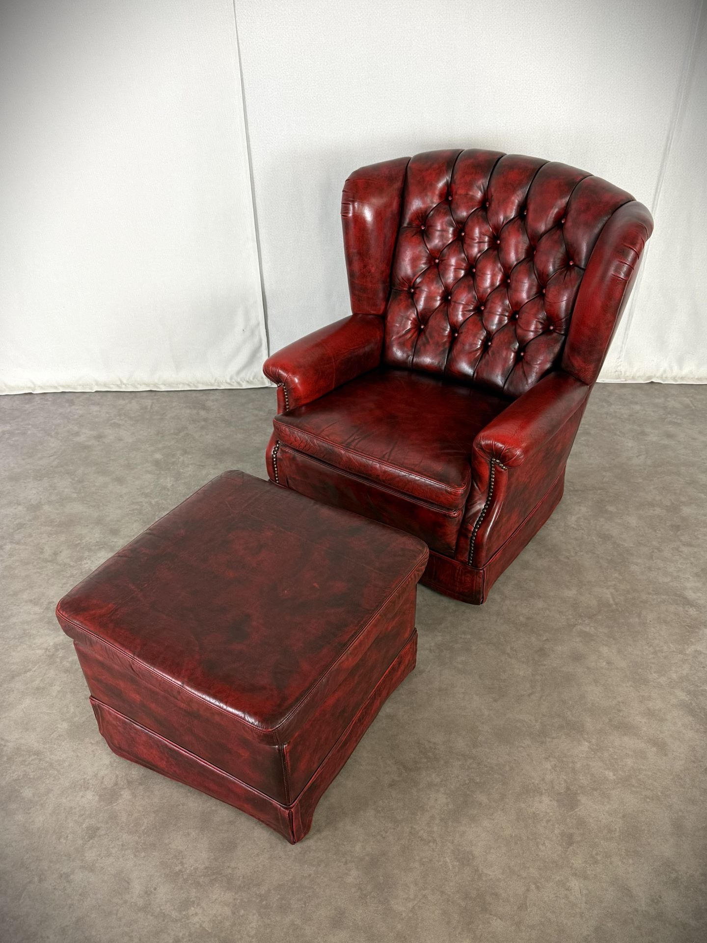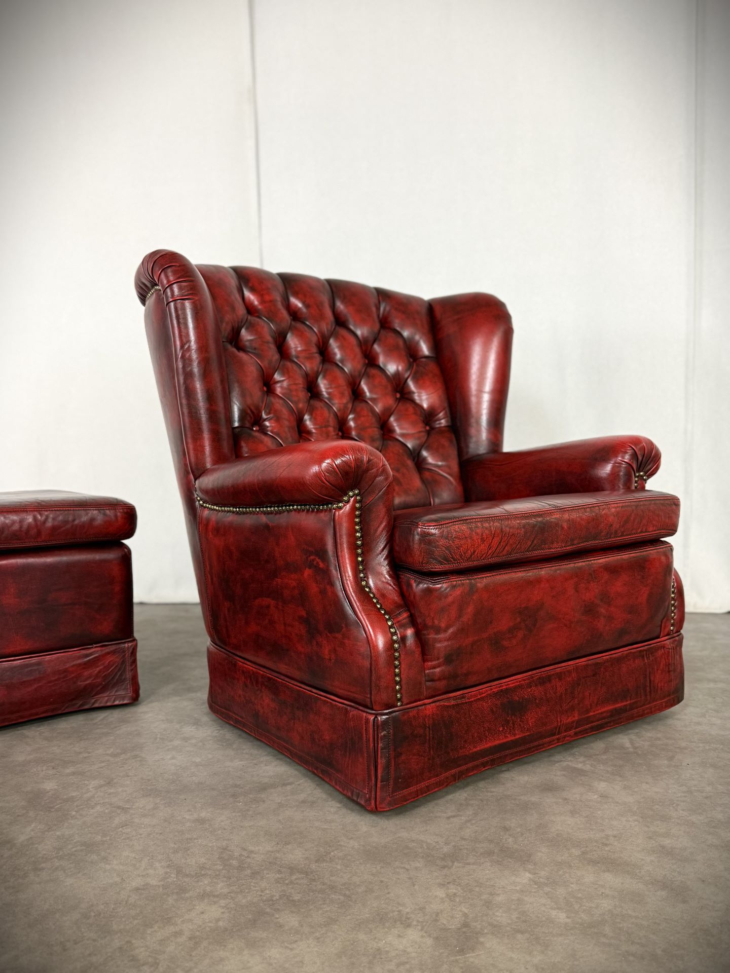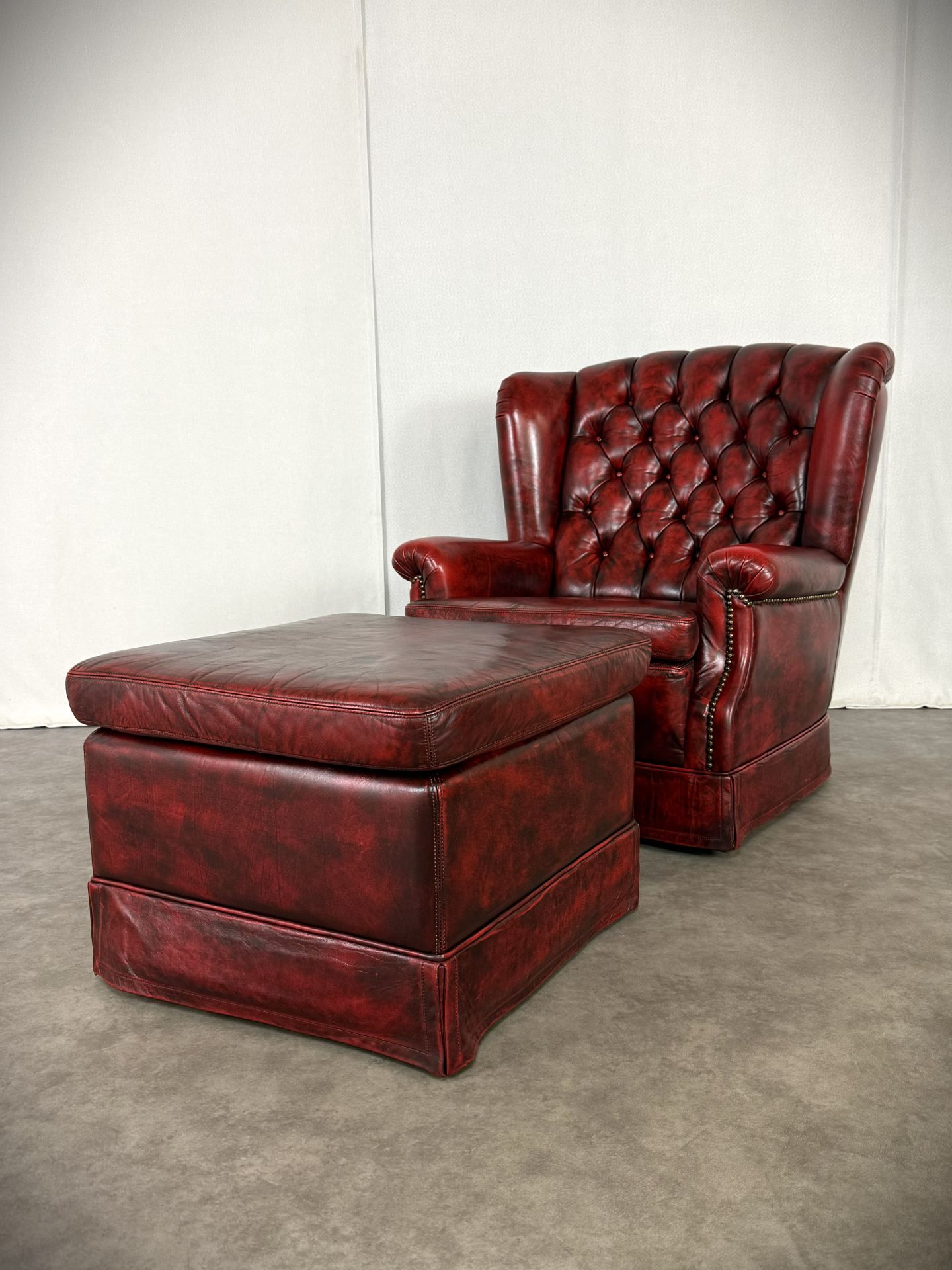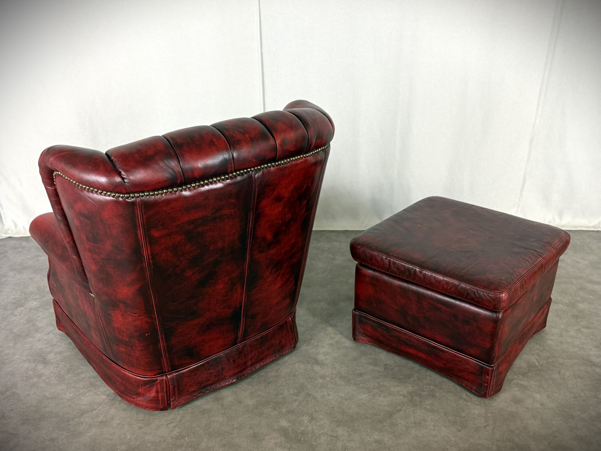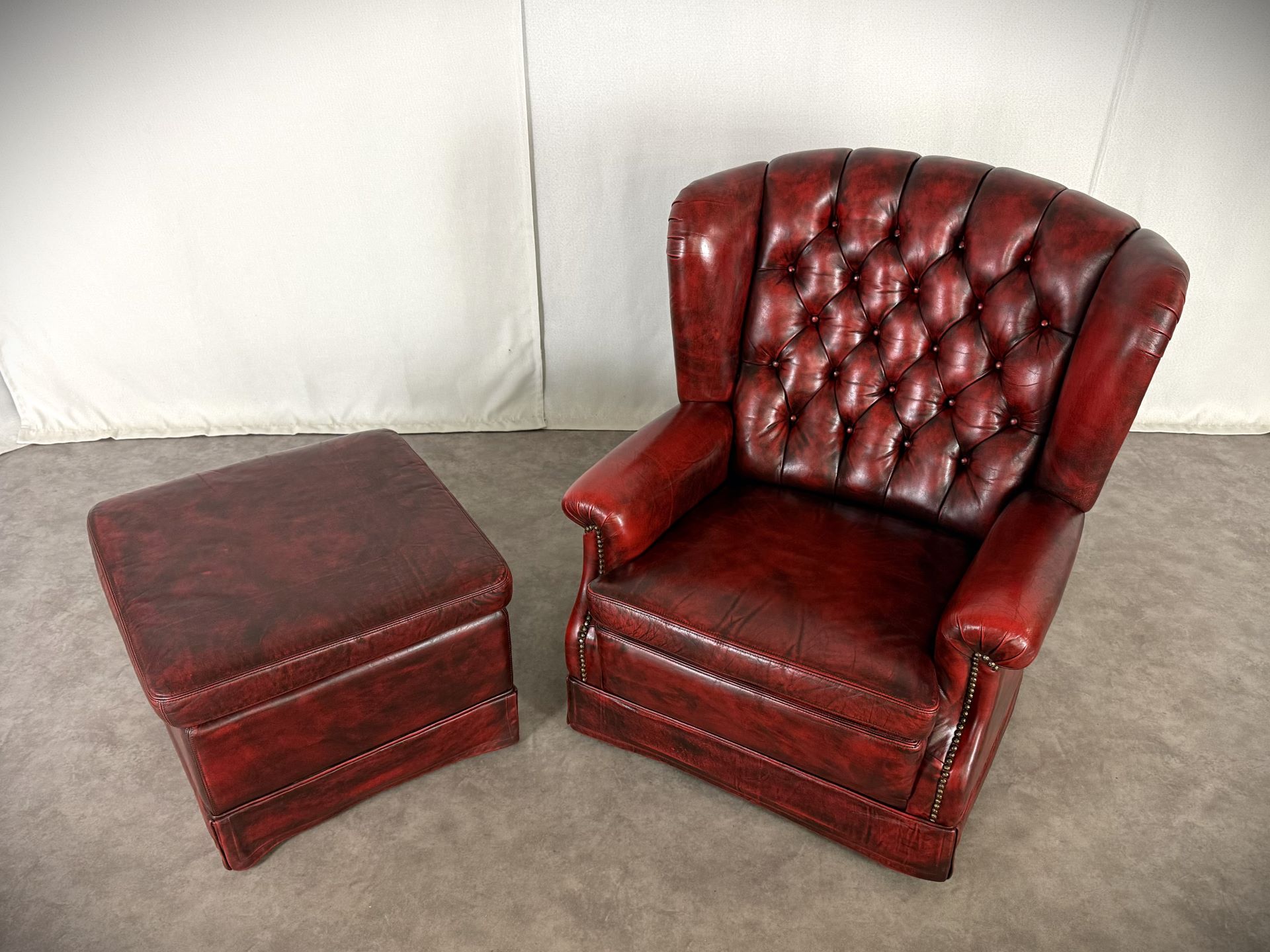 Exklusives Set: Original Vintage, Chesterfield Bradford Sessel mit Ottoman in tiefem Oxblood. Eleganz aus den 1960er Jahren!