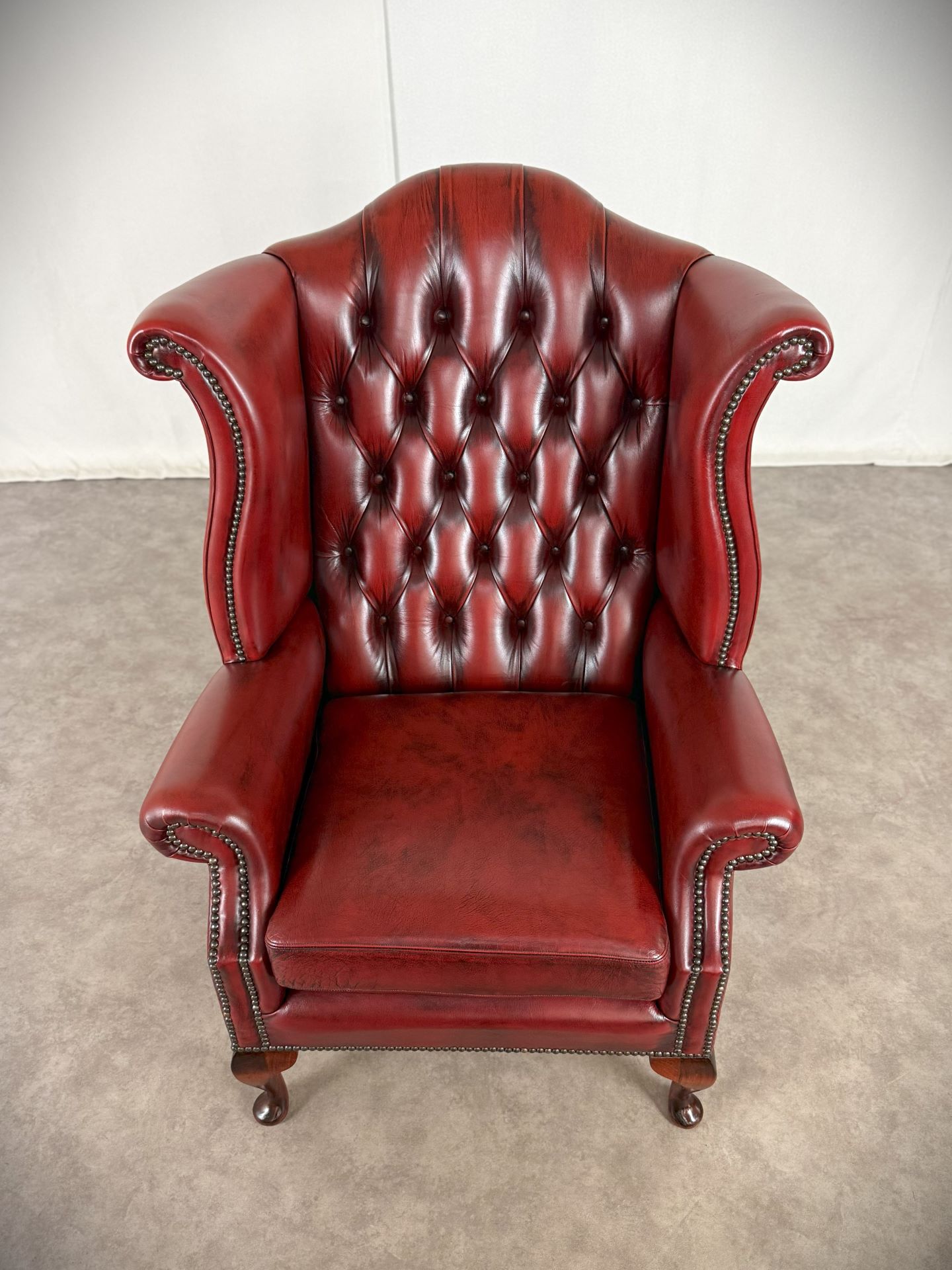 Chesterfield Ledersessel Scroll Wing Vintage Sessel Oxblood