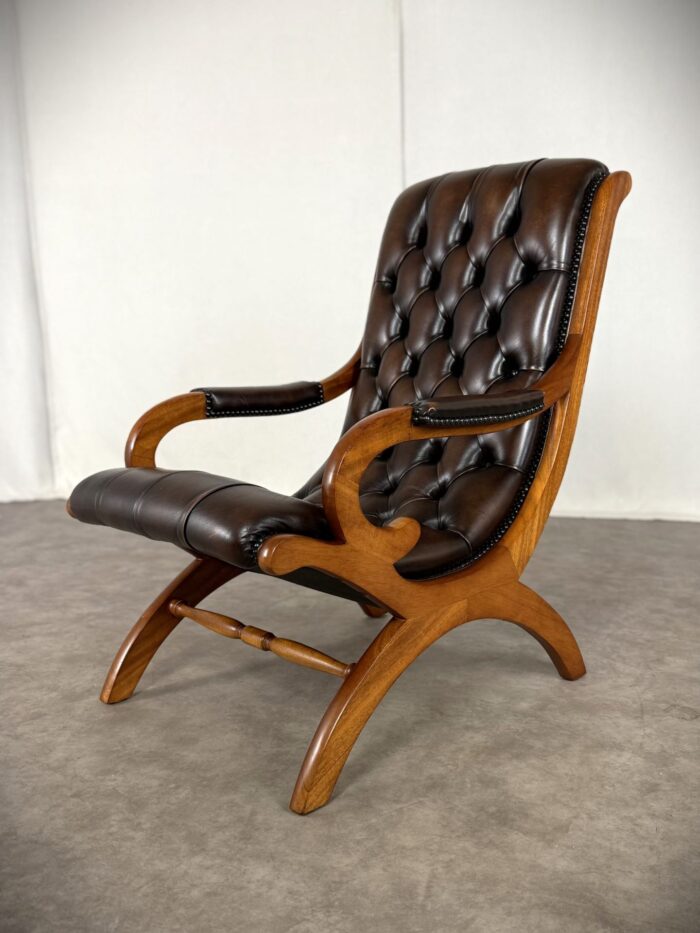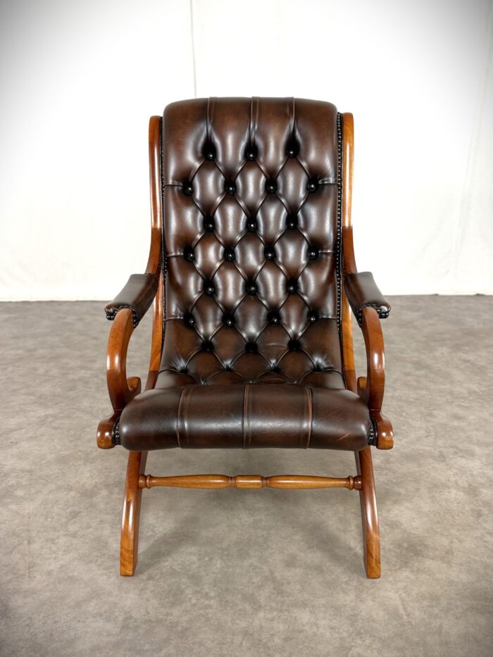 • Material: Hochwertiges, braunes Echtleder mit charakteristischer Chesterfield-Knopfheftung