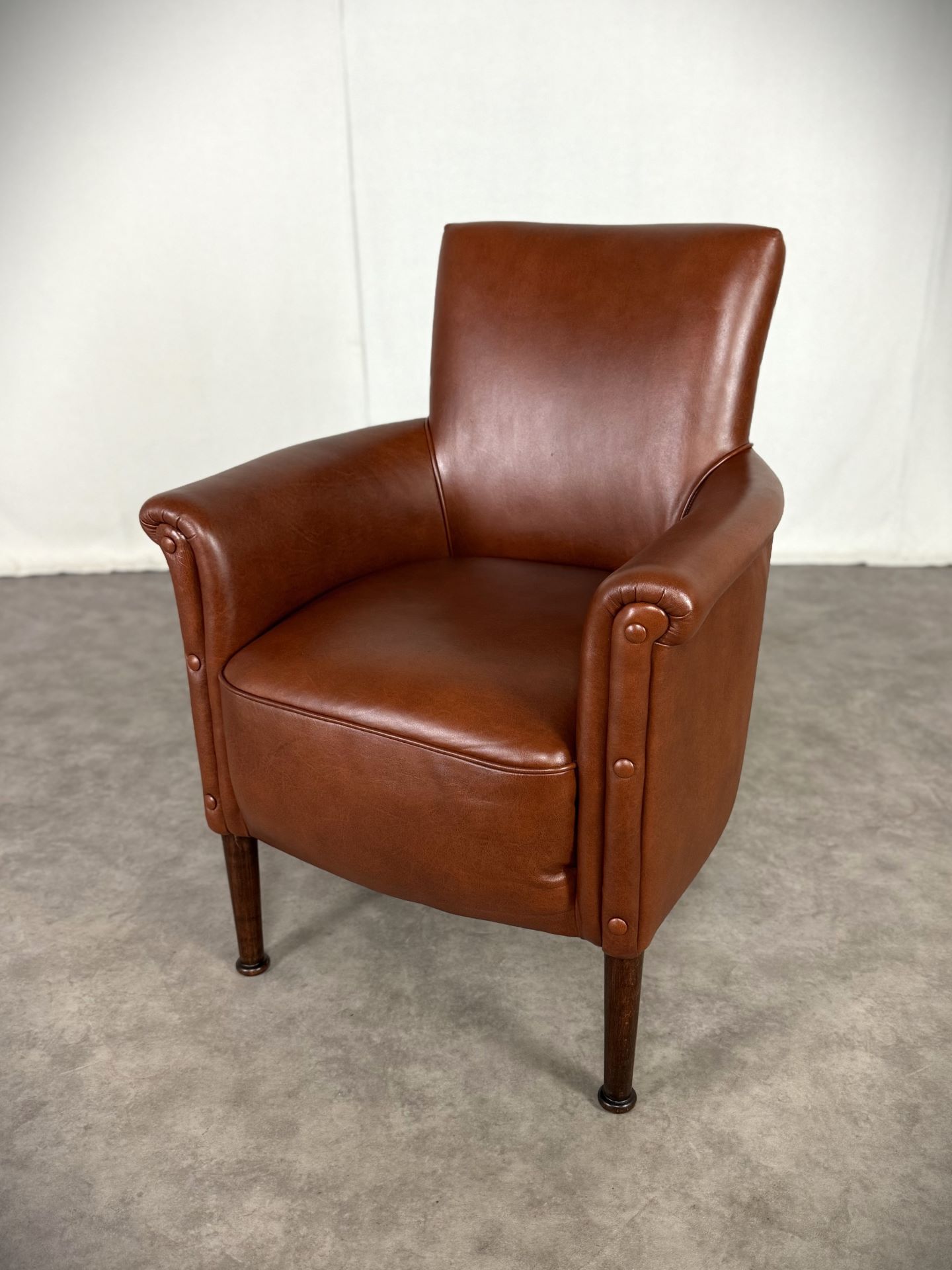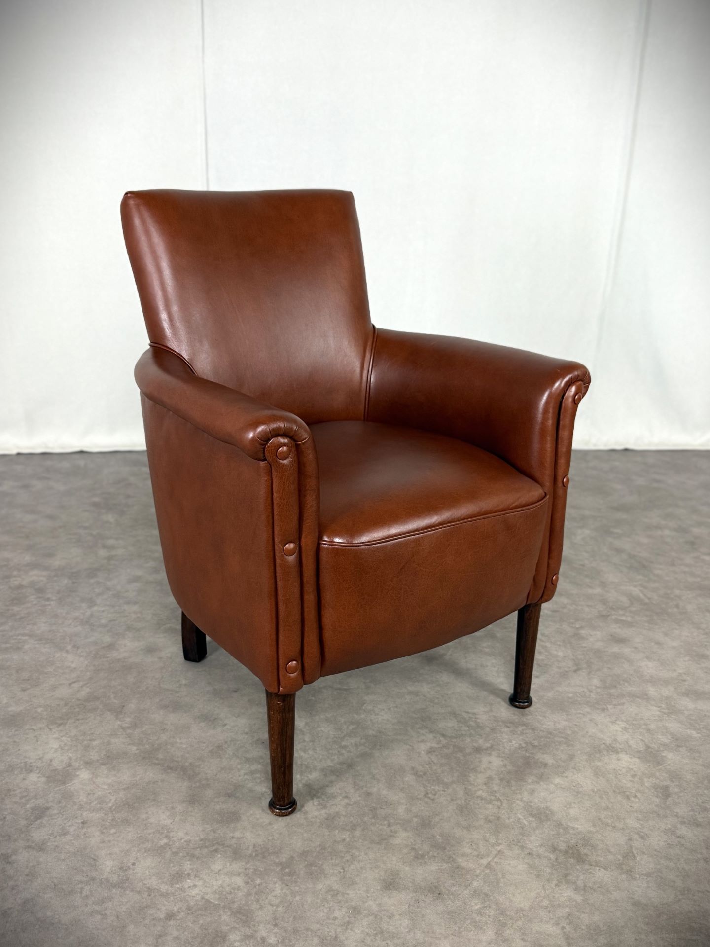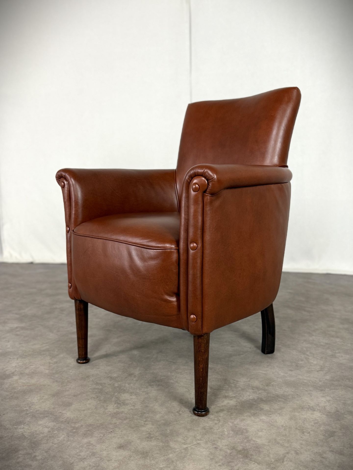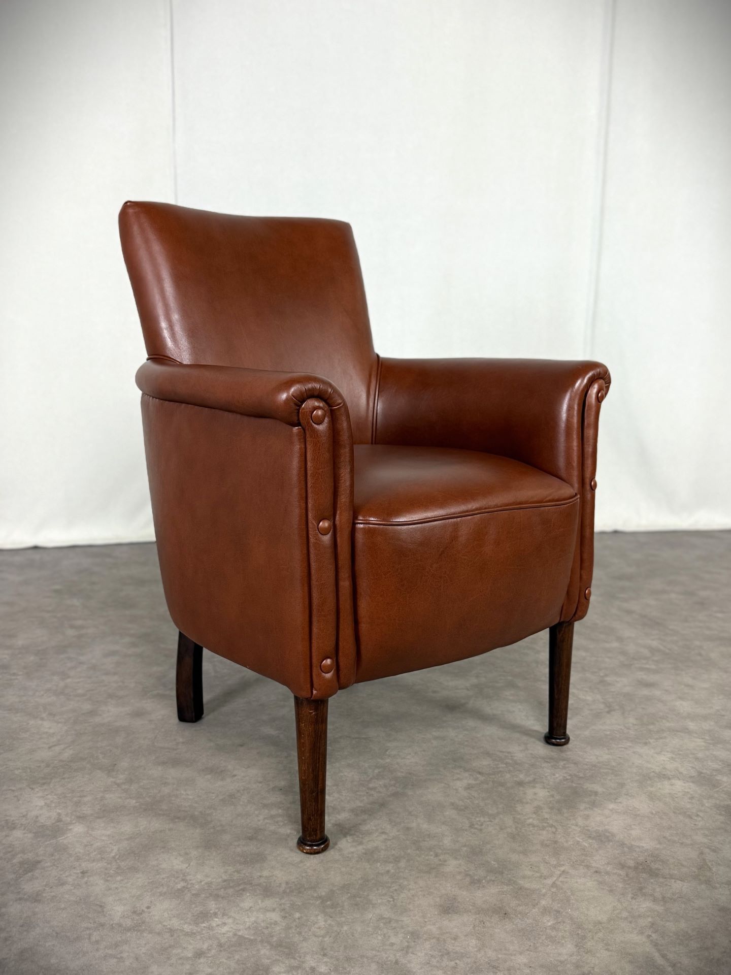 Zum Verkauf steht ein stilvoller Chesterfield „Highback“ Clubessel in edlem Cognacbraun. Der Sessel überzeugt durch seine klassische Form mit charakteristisch gerollten Armlehnen, eleganten Zierknöpfen und hochwertigem Echtlederbezug. Die hohen Holzfüße unterstreichen den traditionellen Look und sorgen gleichzeitig für Stabilität.
