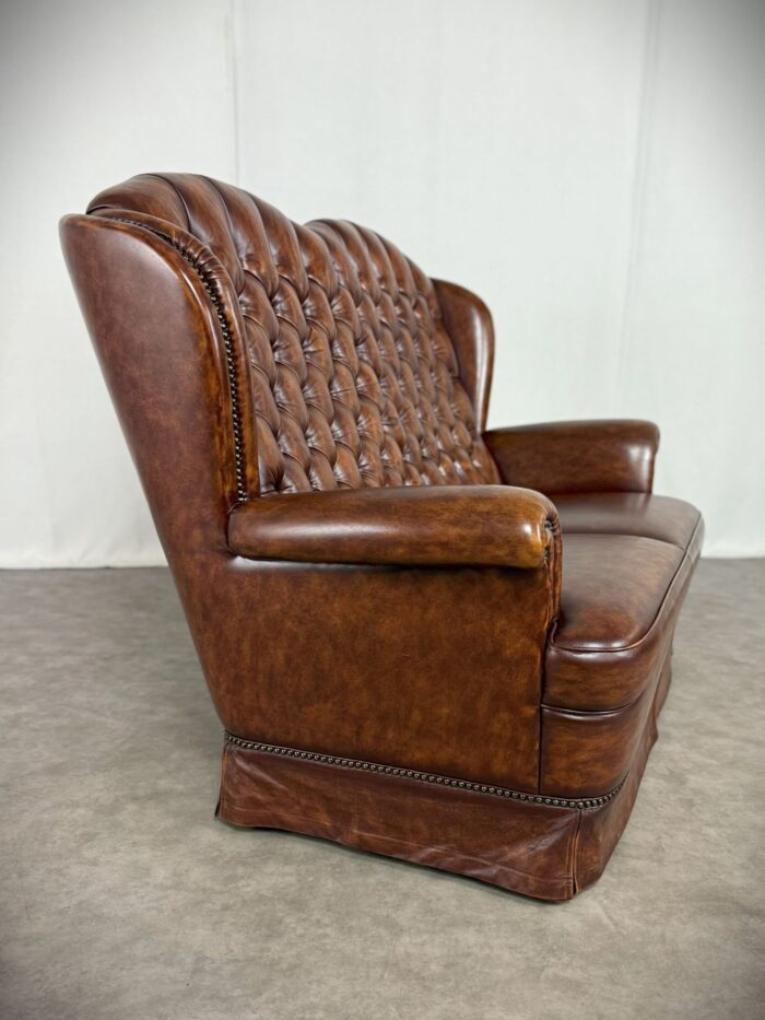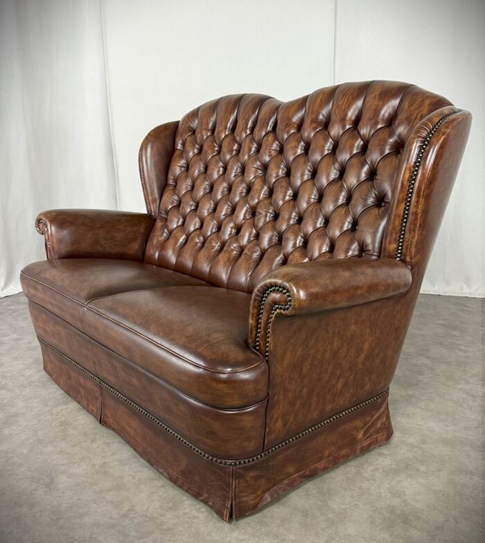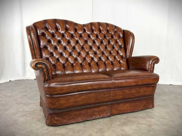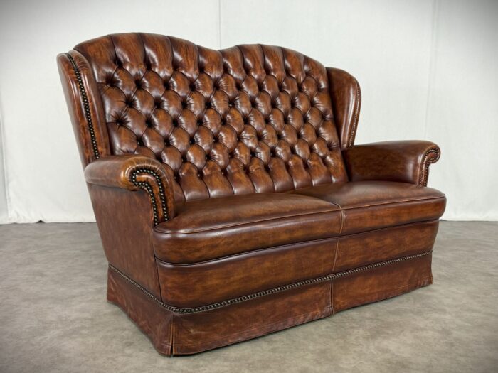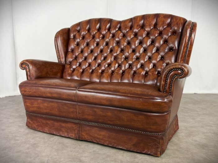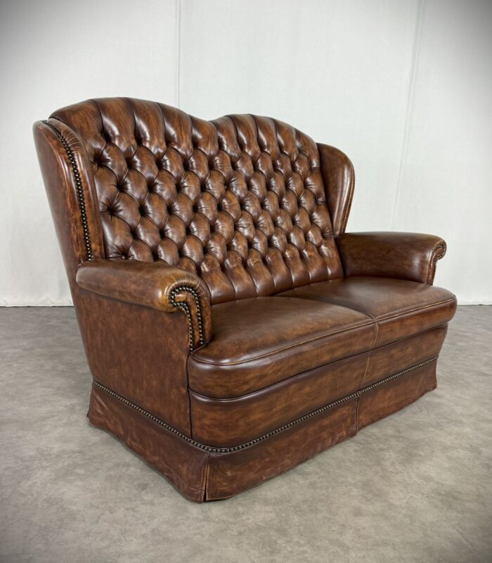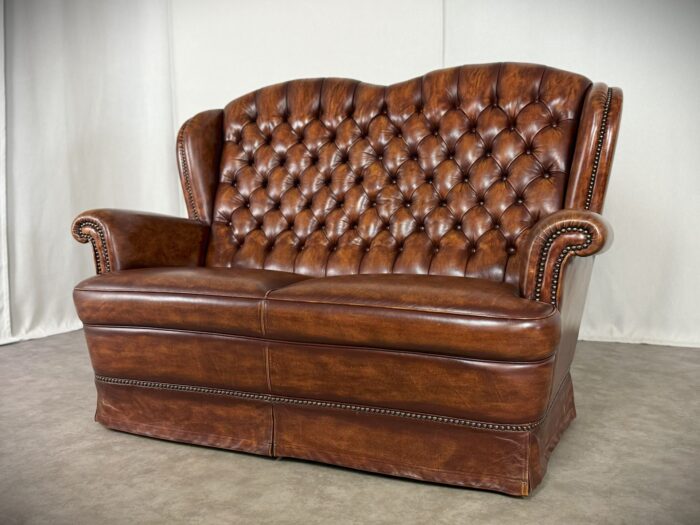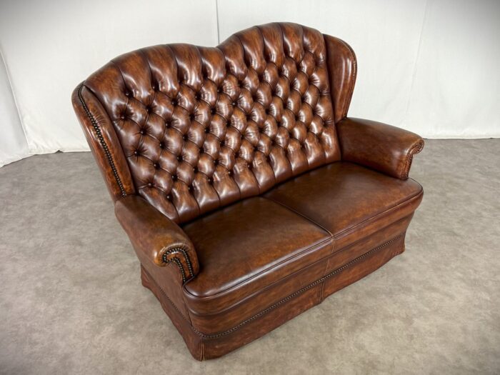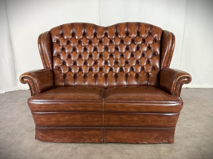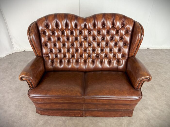 Chesterfield Ledersofa Camel Back Design Couch Zweisitzer