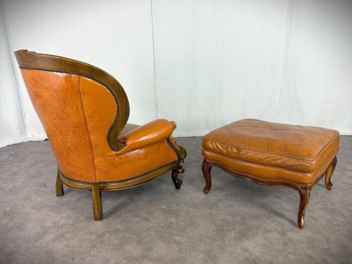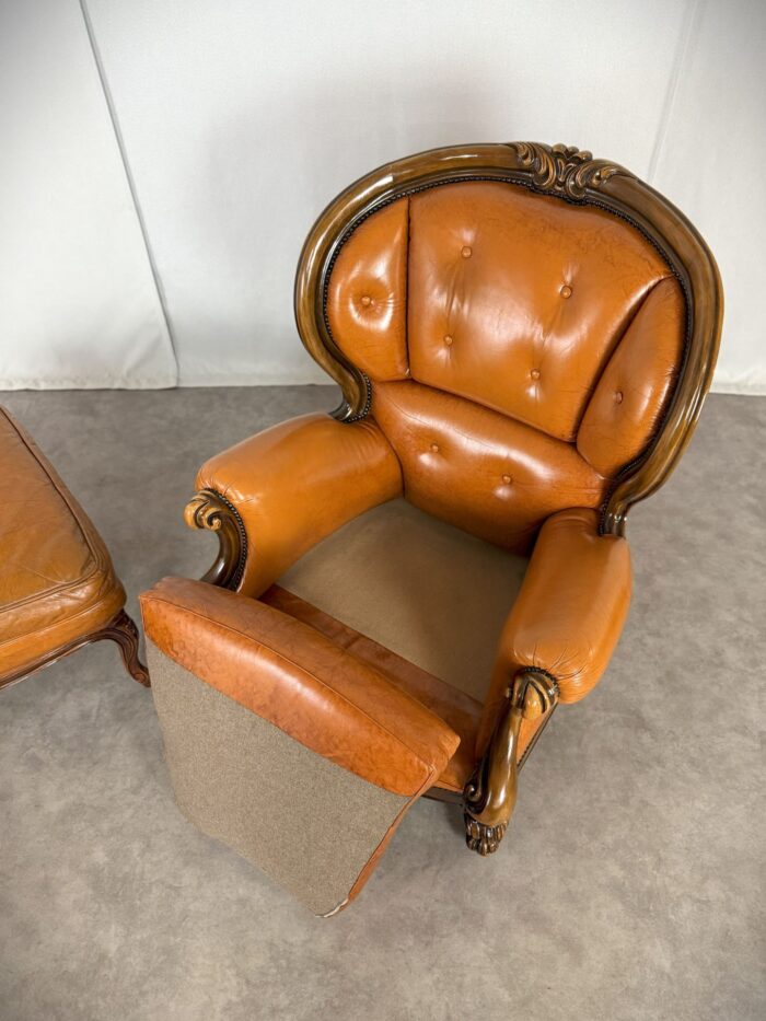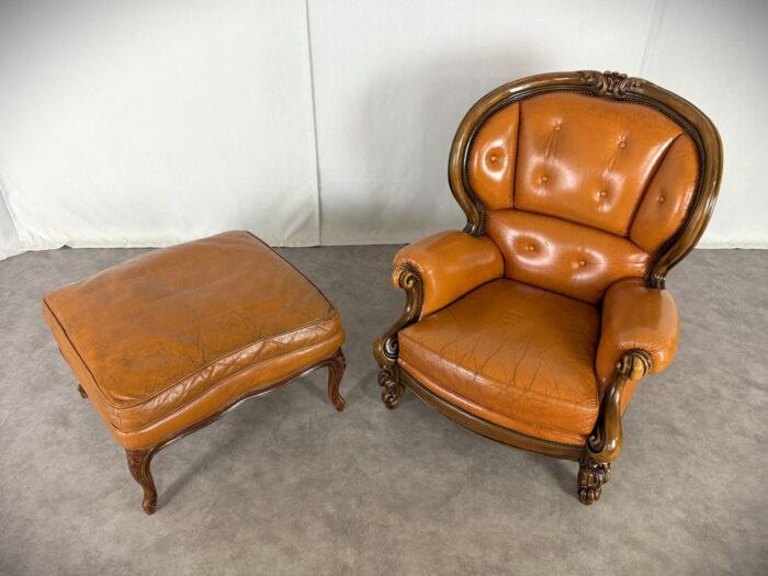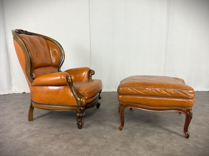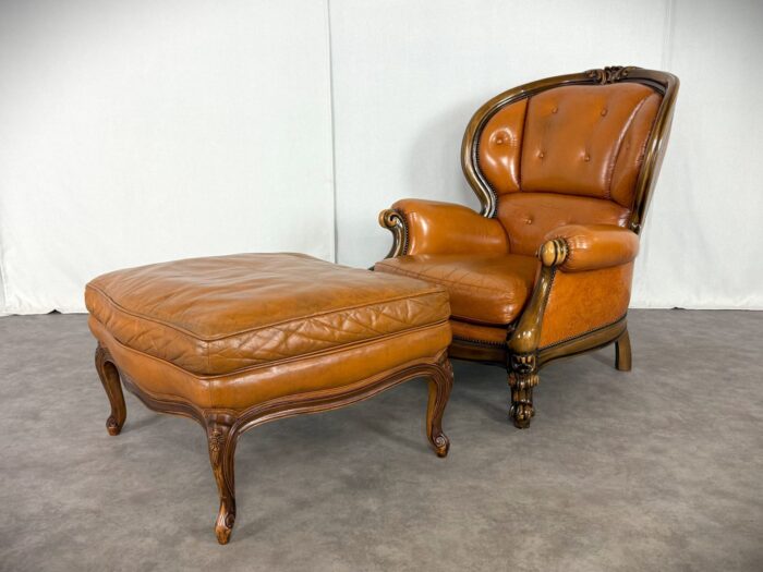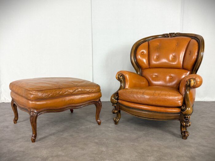 Chippendale Ledersessel Hocker Vintage Barock Design Sessel