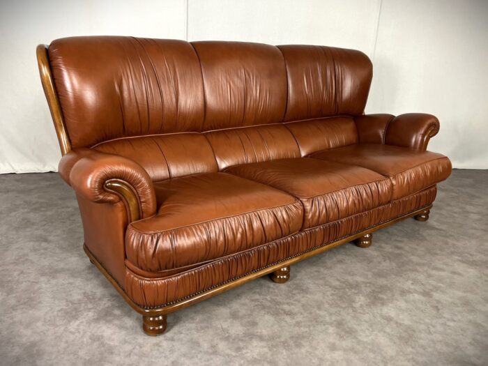 Chippendale Ledersofa Vintage Barock Design Couch Dreisitzer