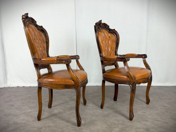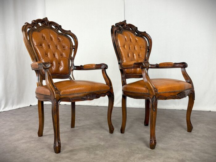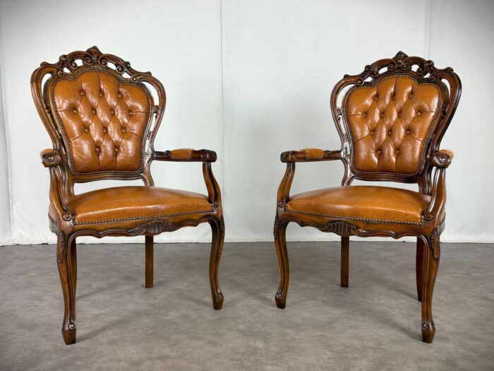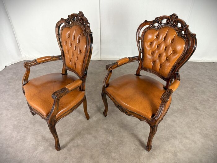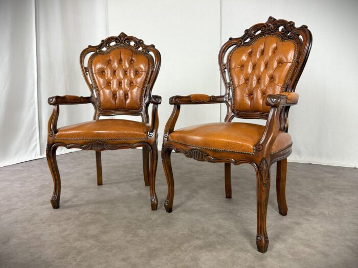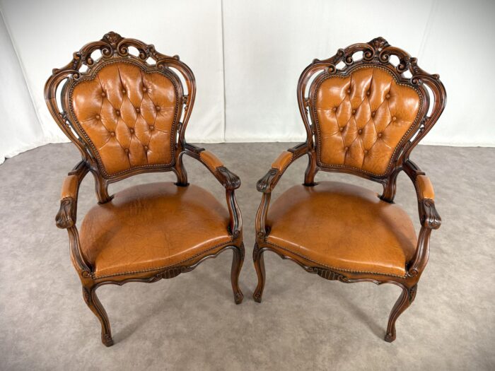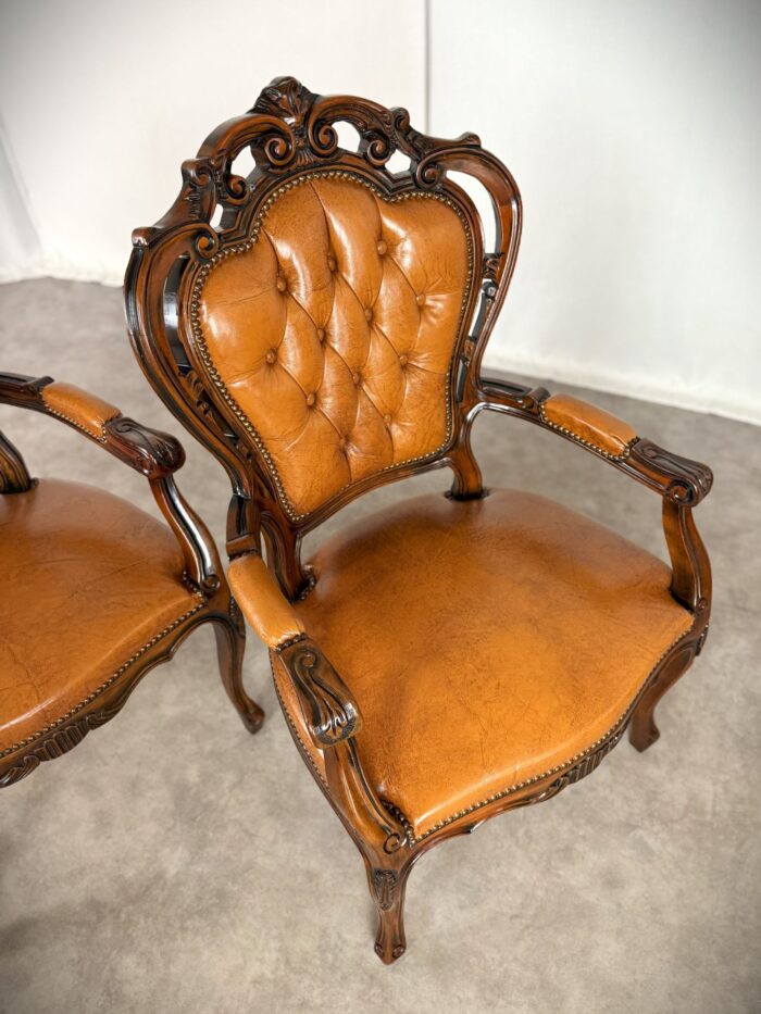 Chippendale Sessel Vintage Paar Barock Design Ledersessel