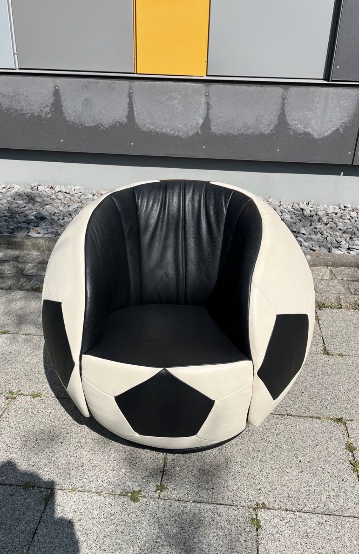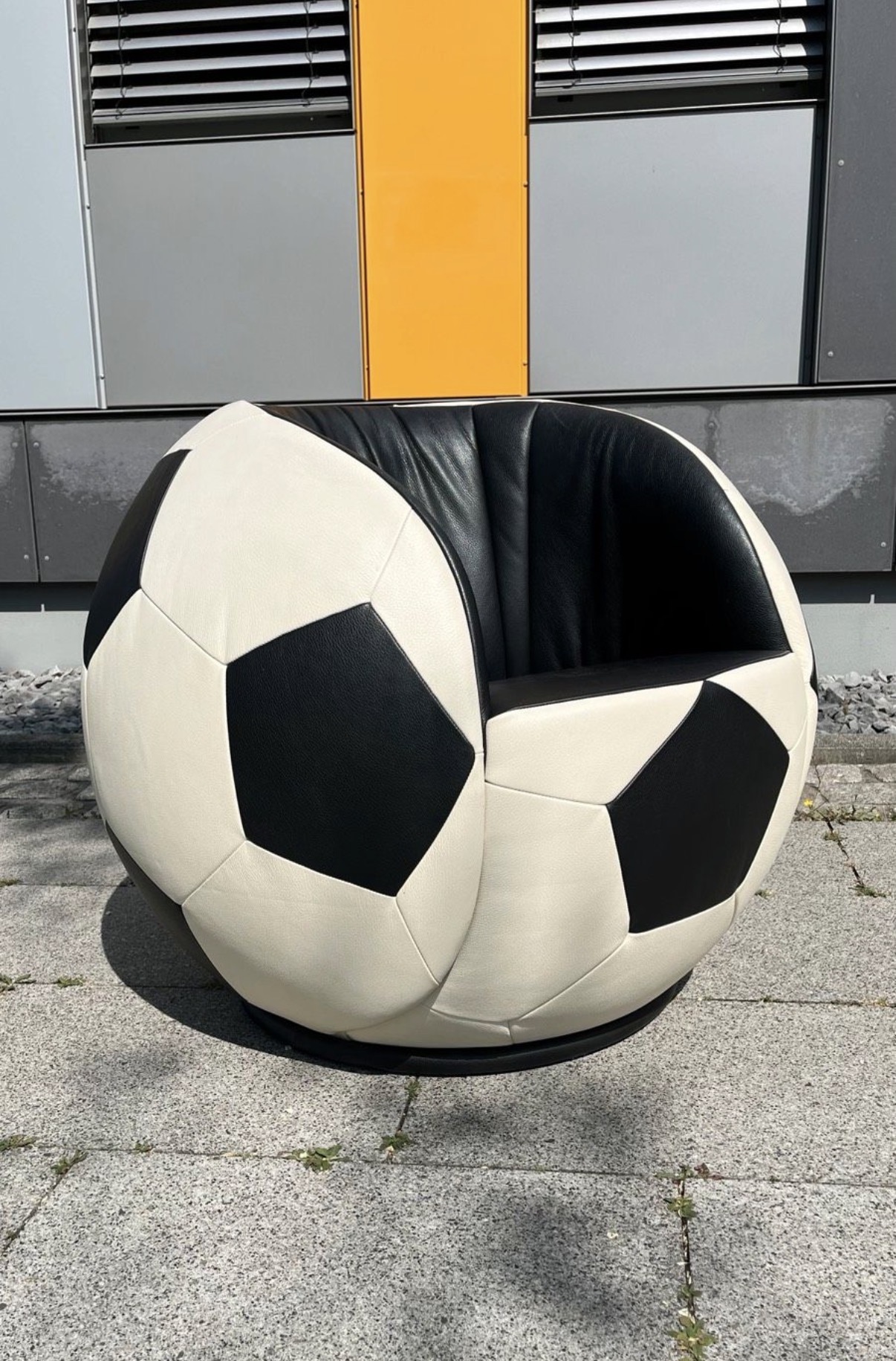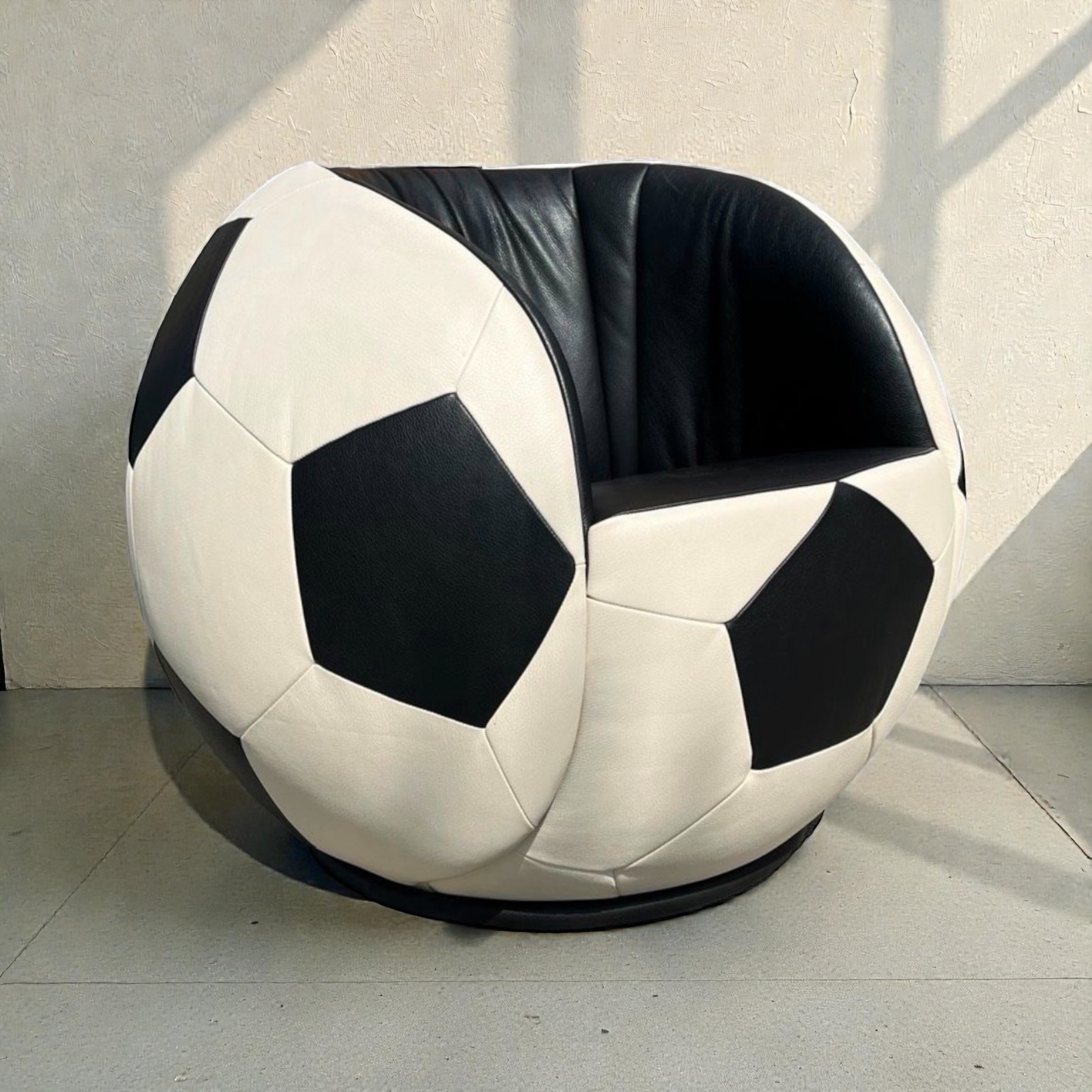 Dieser Sessel ist ideal für Designfans, Fußballliebhaber oder alle, die ein besonderes Möbelstück mit Persönlichkeit suchen.