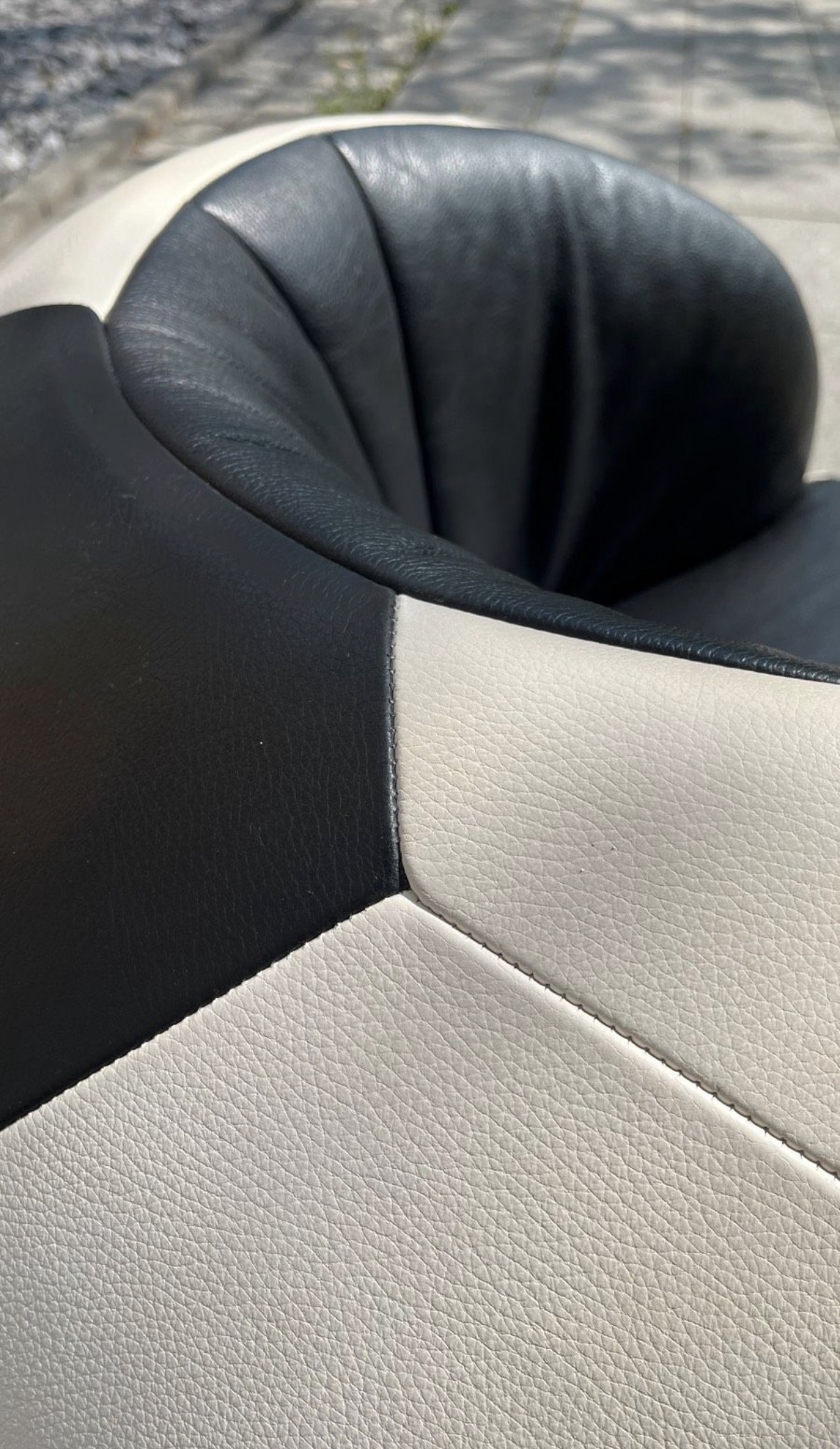 Gefertigt aus edlem Leder in klassischem Schwarz-Weiß, bietet dieser Sessel nicht nur eine auffällige Optik, sondern auch hervorragende Verarbeitung und langlebige Qualität. Die runde Form sorgt für ein gemütliches Sitzgefühl und macht ihn zum perfekten Hingucker im Wohnzimmer, Loft, Büro oder in einer stilvollen Lounge.