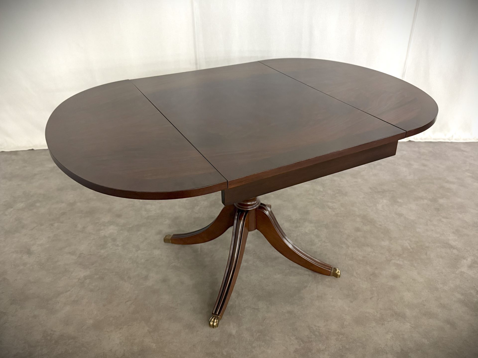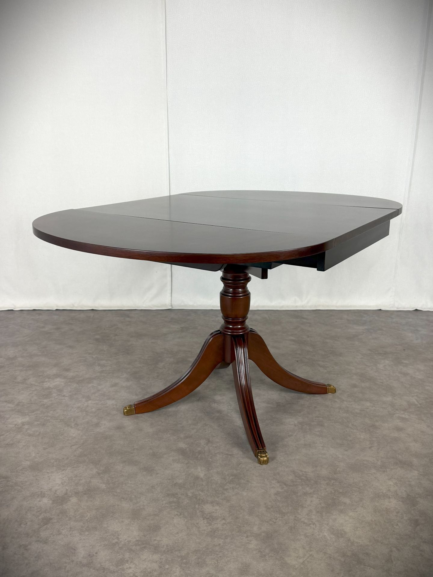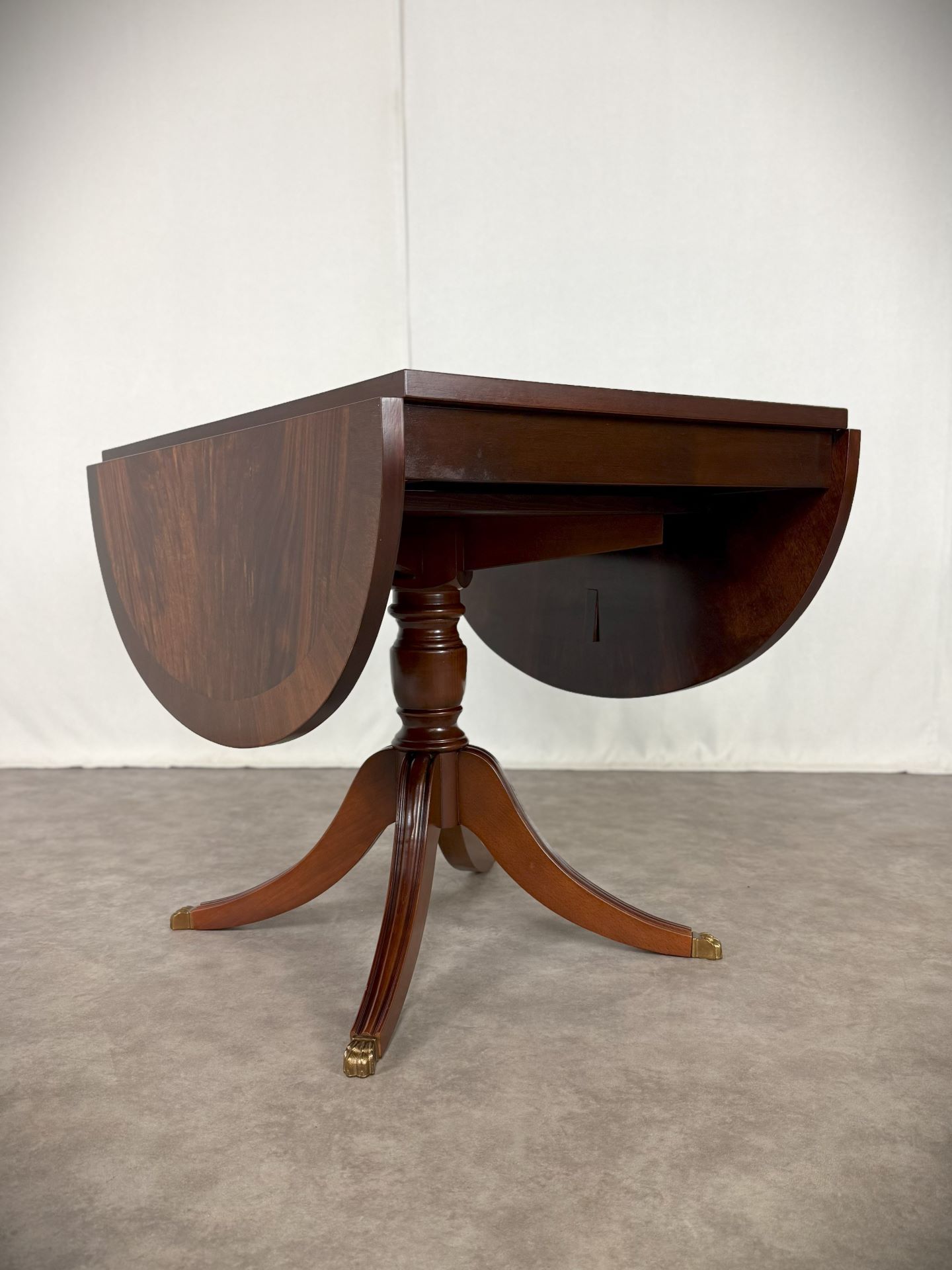 Zum Verkauf steht ein eleganter, englischer Vintage Tisch aus massivem Mahagoni von 1960. Das zeitlose Design verbindet klassische Linien mit praktischer Funktionalität.