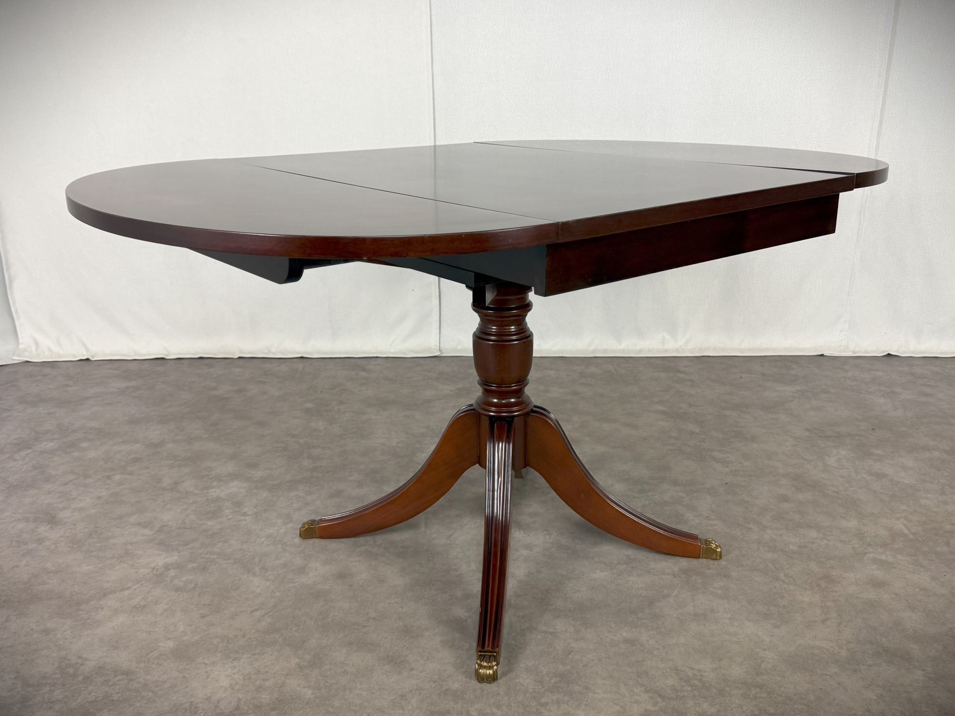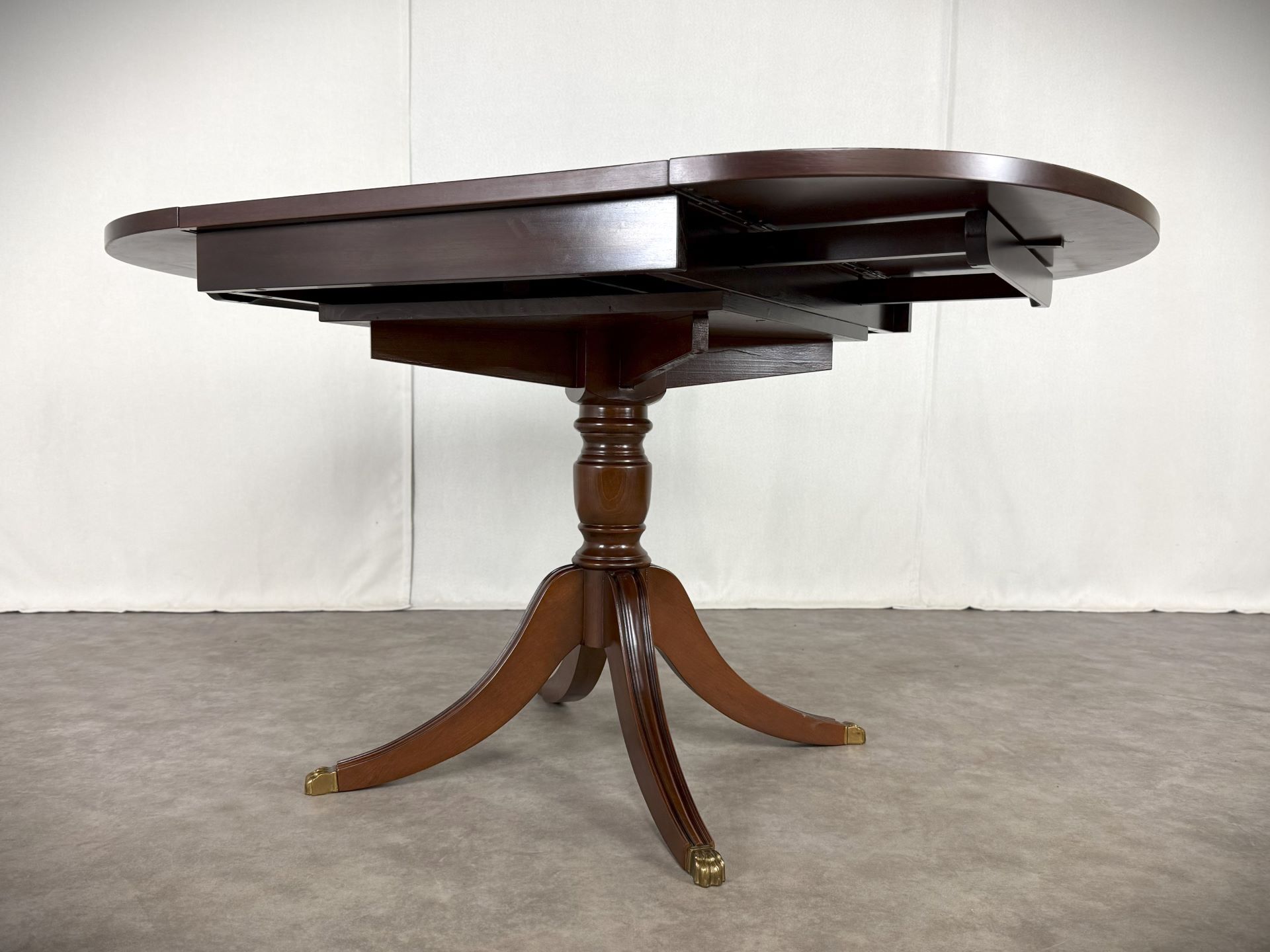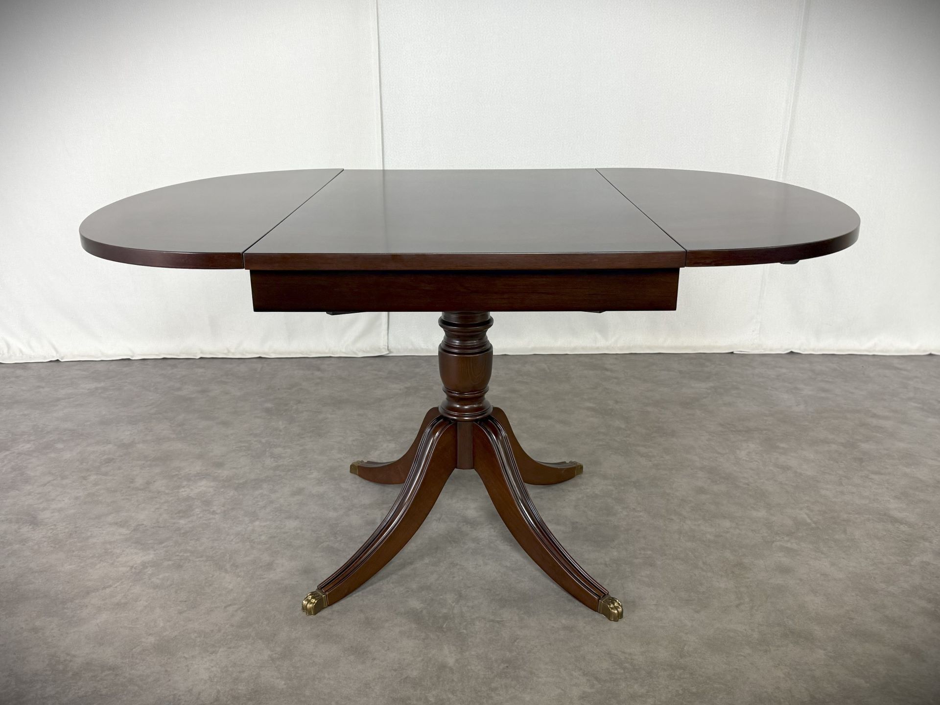 Zum Verkauf steht ein eleganter, englischer Vintage Tisch aus massivem Mahagoni von 1960. Das zeitlose Design verbindet klassische Linien mit praktischer Funktionalität.