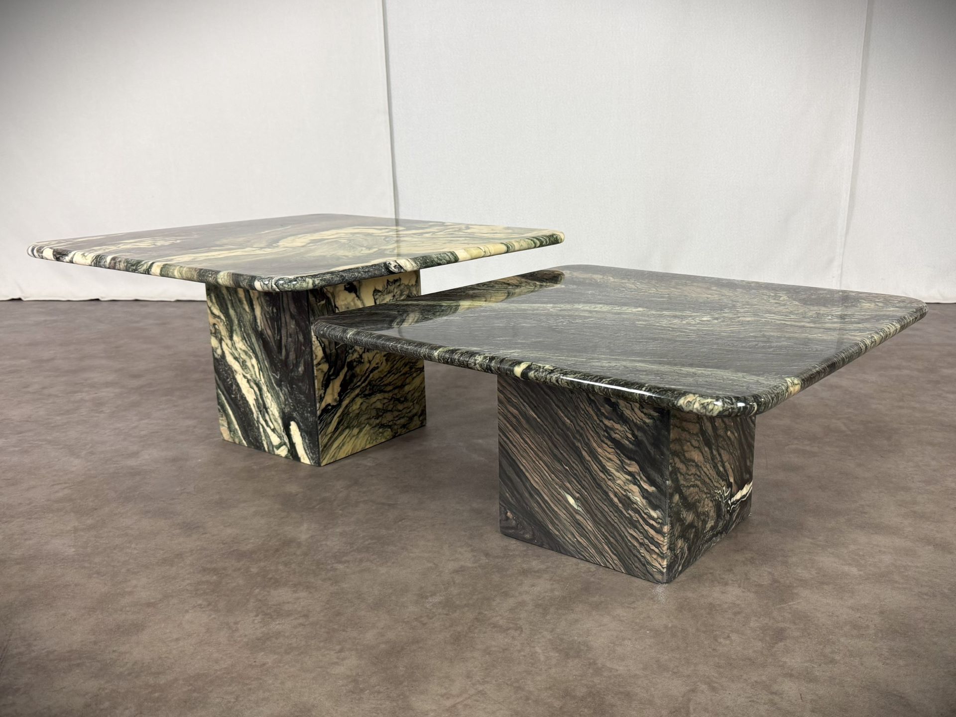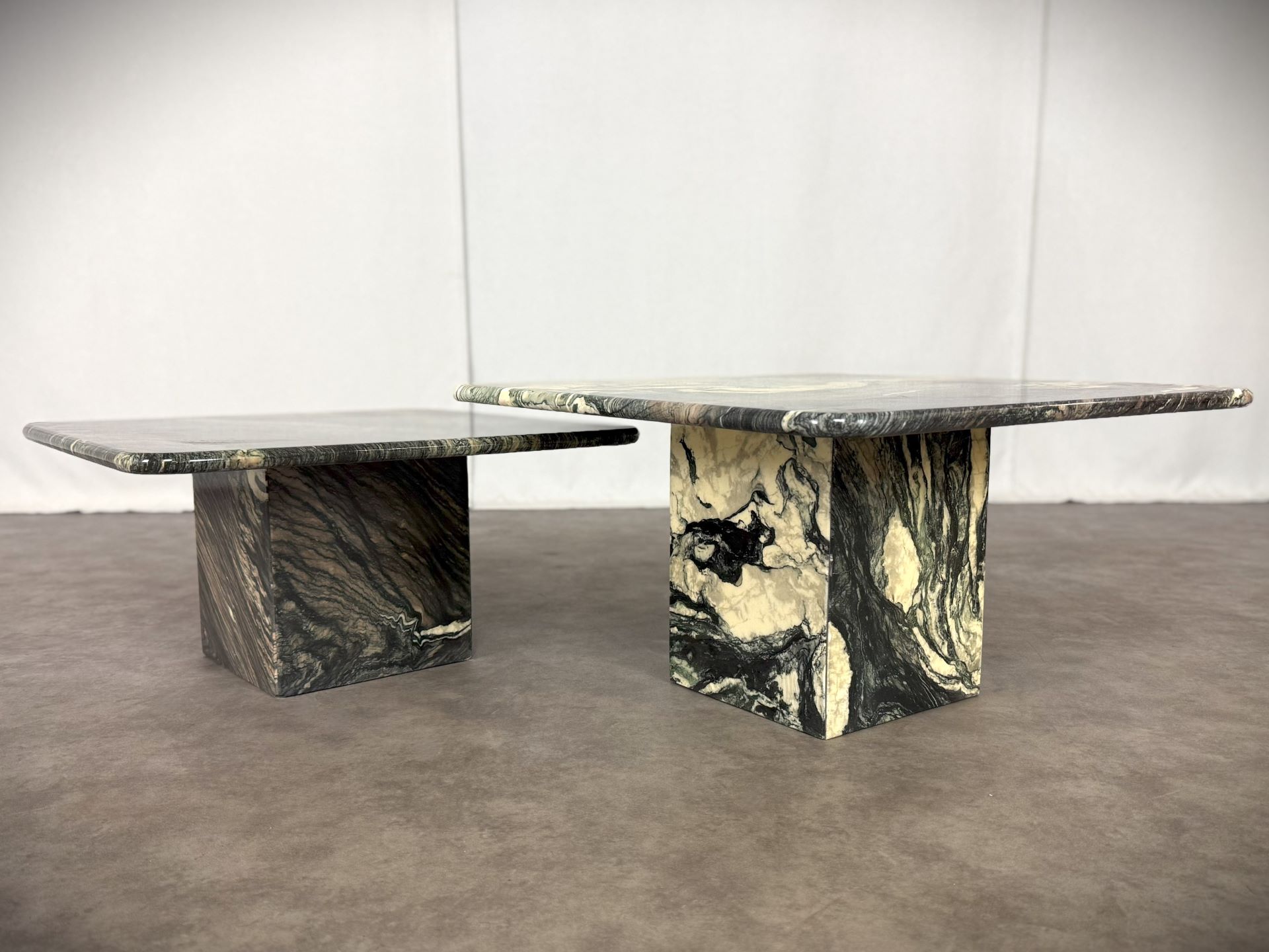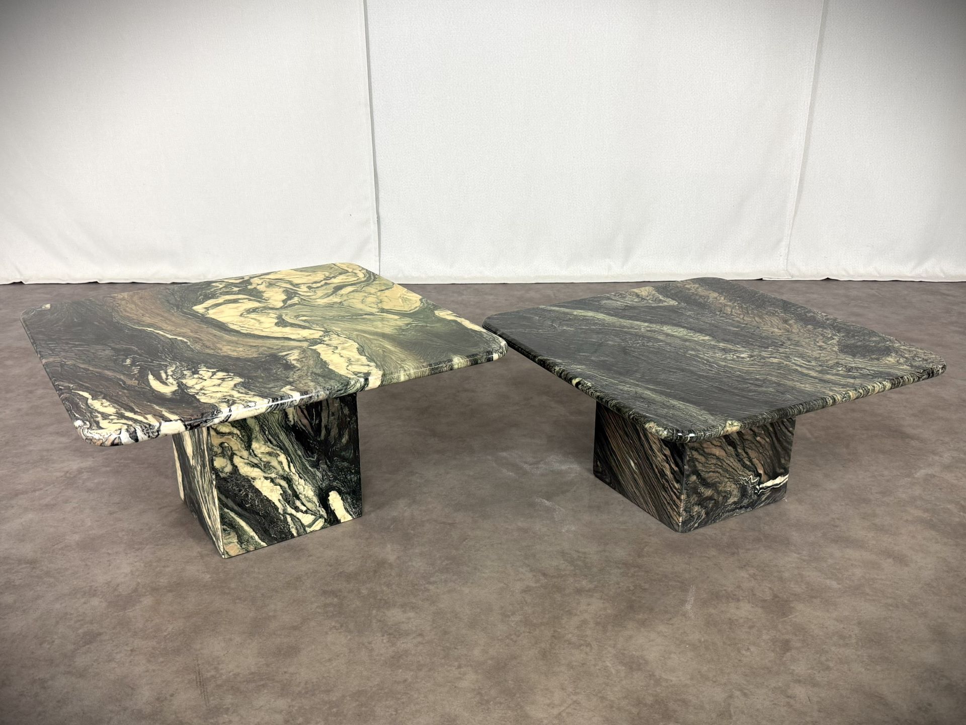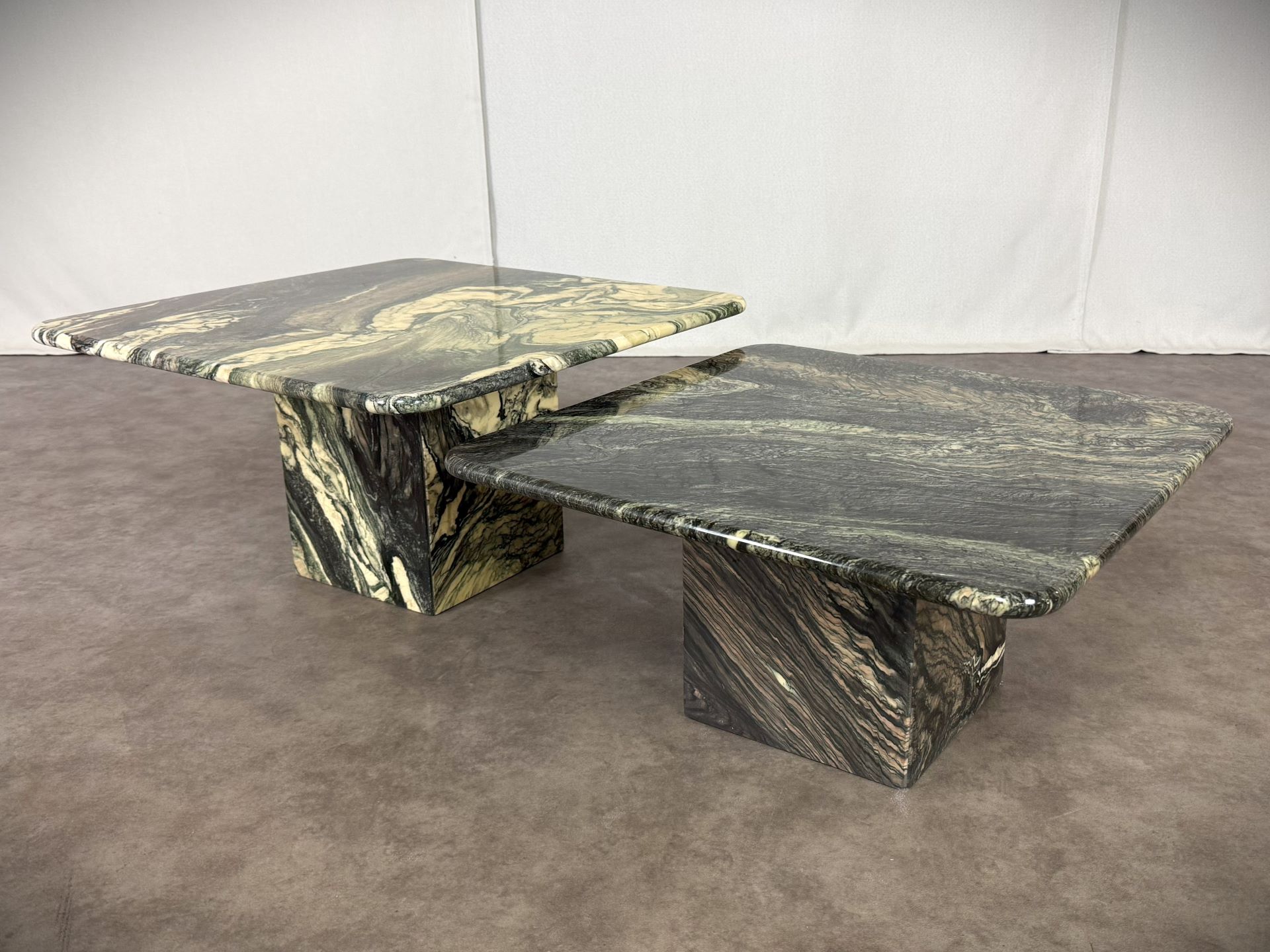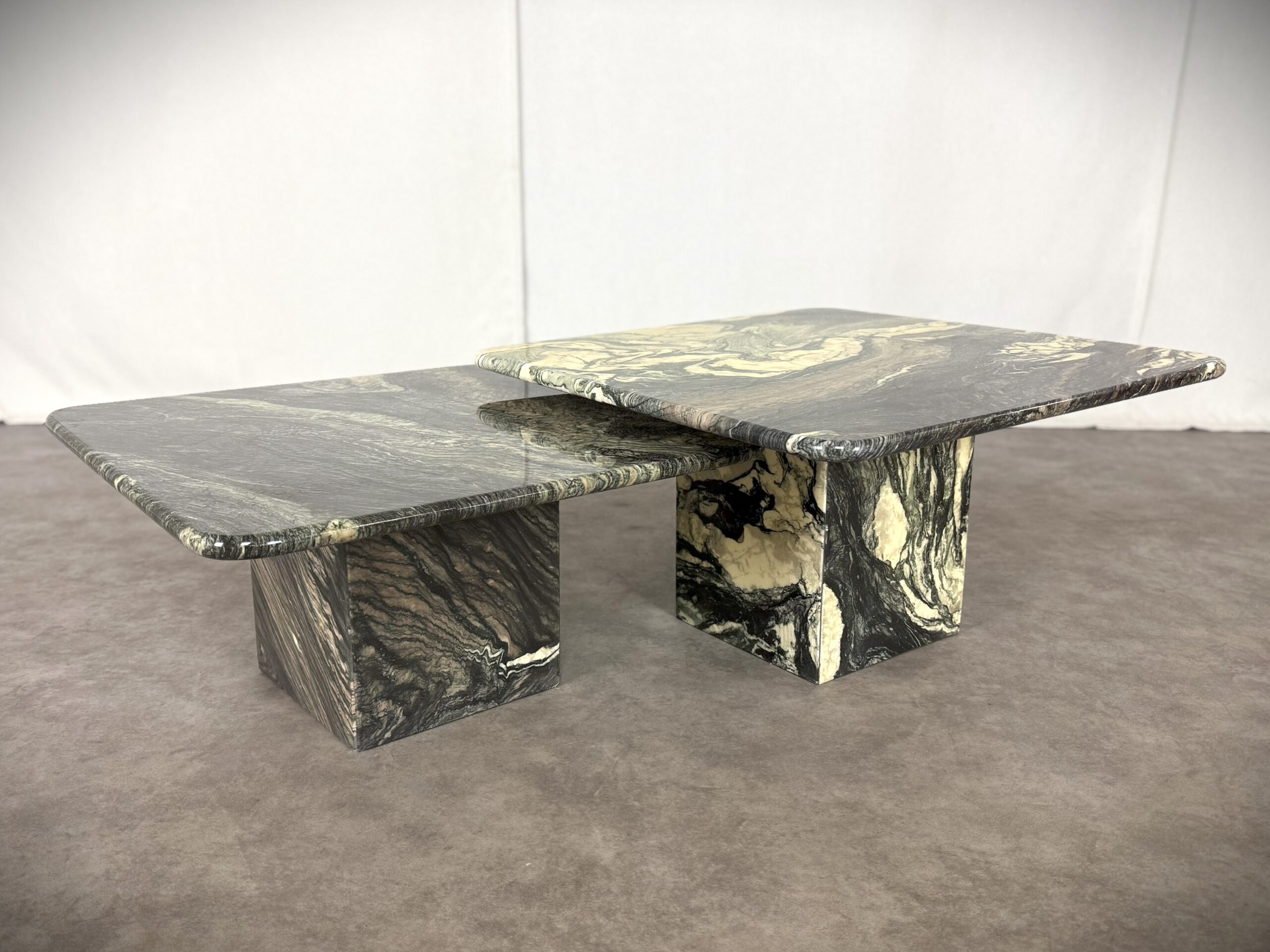 Vintage Paar italienische Vintage-Marmortische „Cipollino Verde“ – 1960er Jahre, exklusive Designerstücke!