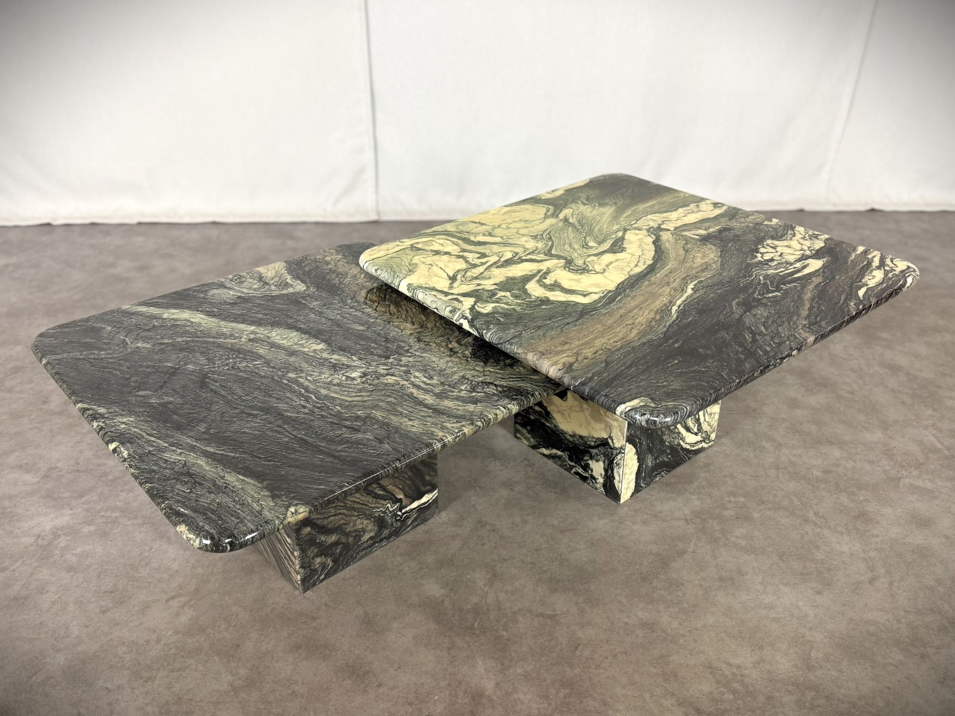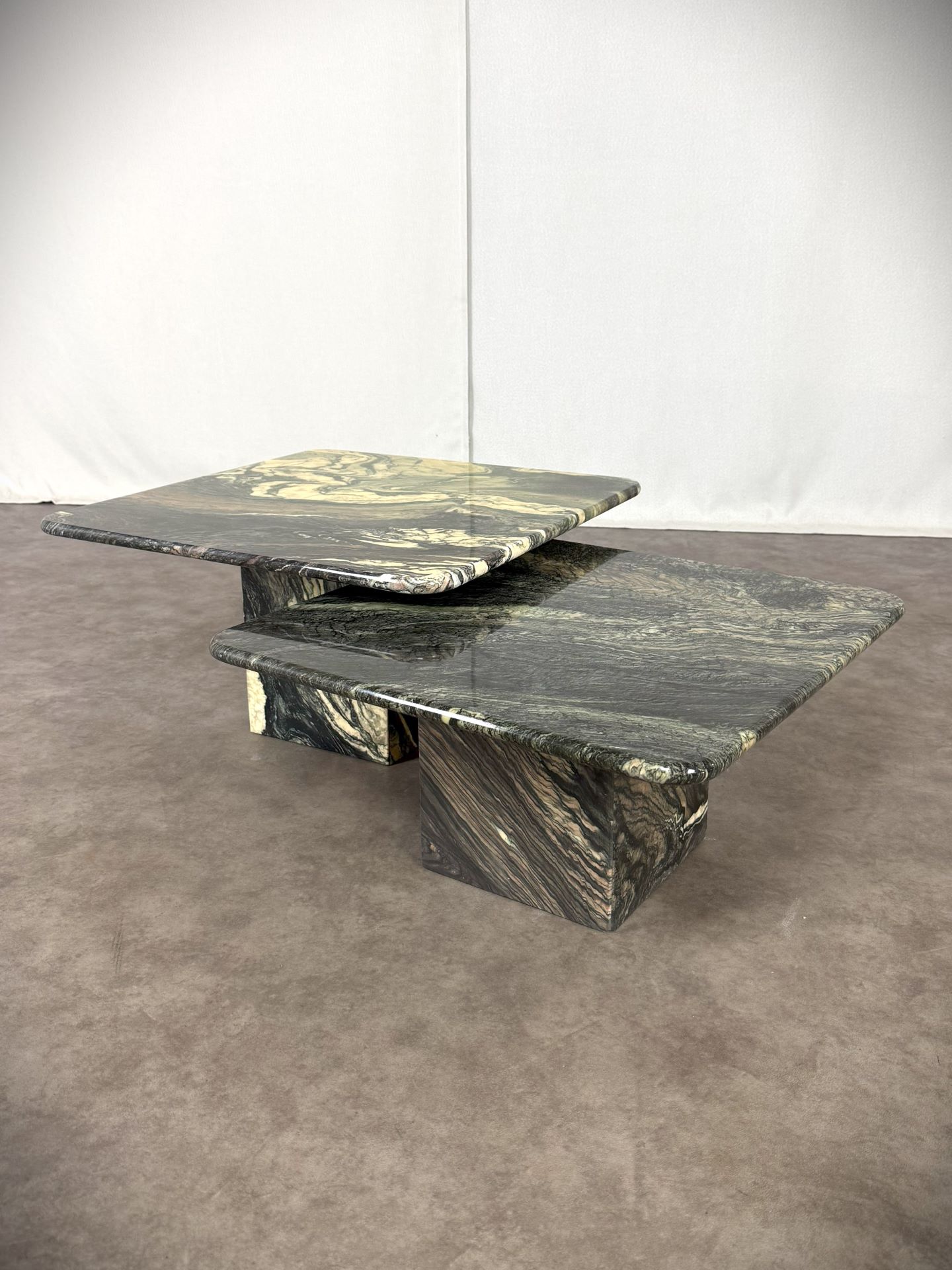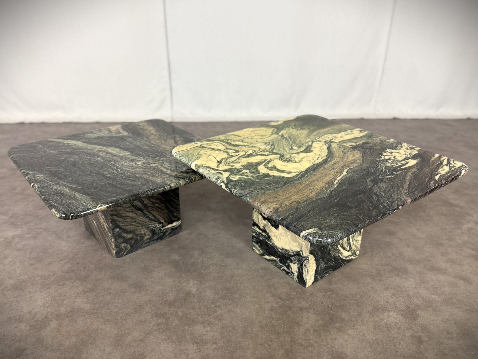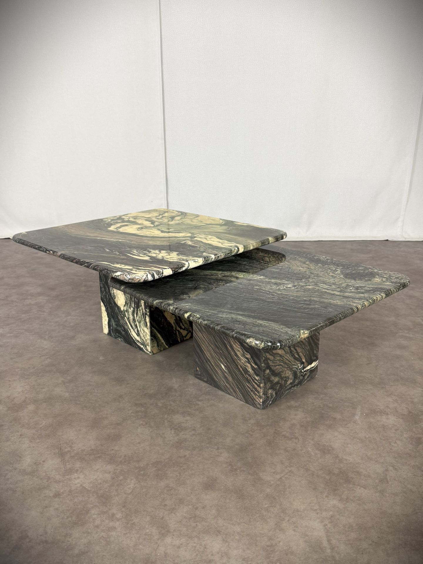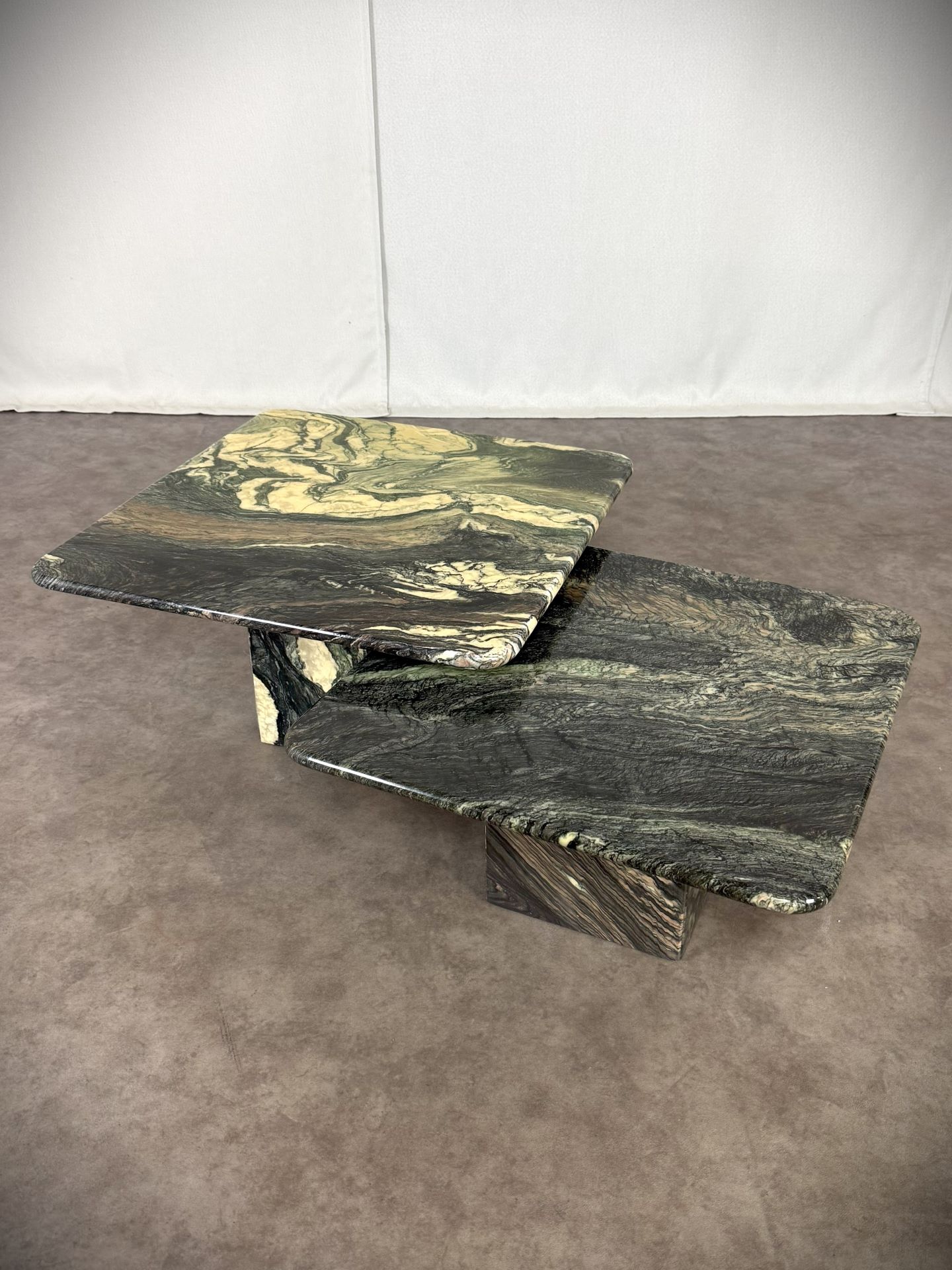 Vintage Paar italienische Vintage-Marmortische „Cipollino Verde“ – 1960er Jahre, exklusive Designerstücke!