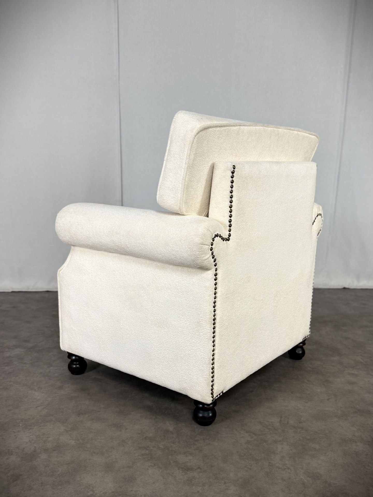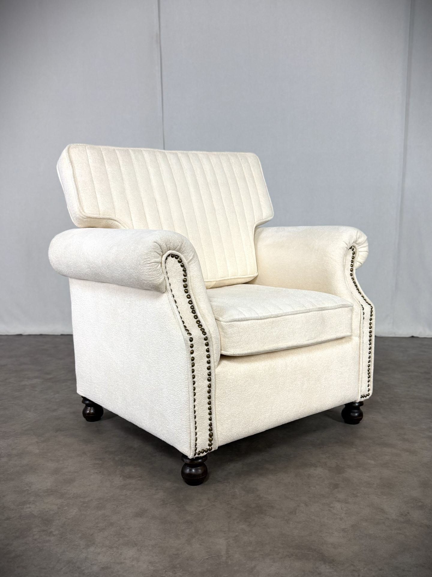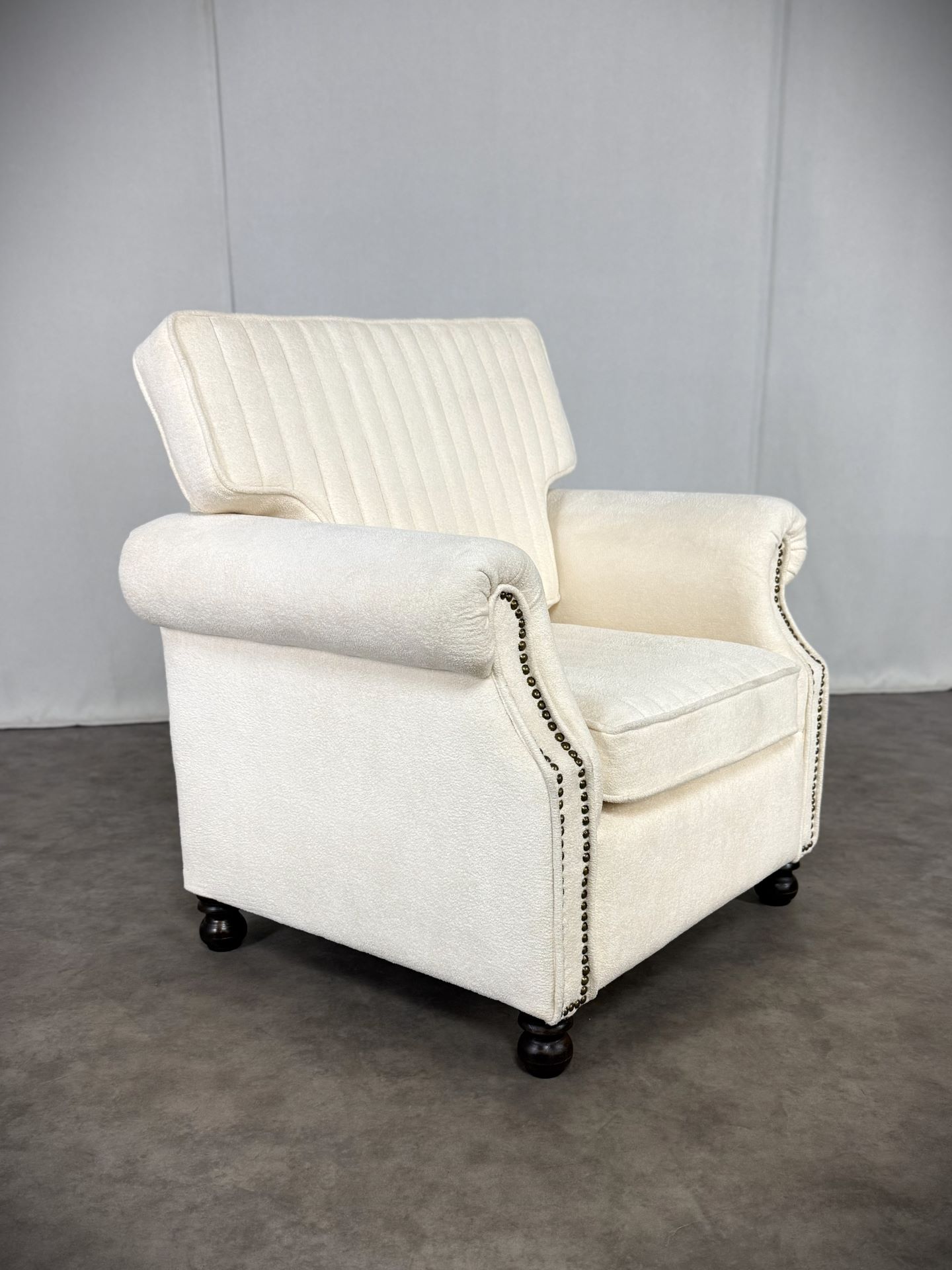 Dieser stilvolle Teddy Style Vintage Sessel vereint klassischen Charme mit modernem Wohnkomfort. Mit seiner eleganten Form, den geschwungenen Armlehnen und den dekorativen Ziernieten bringt er eine warme, stilvolle Atmosphäre in jedes Zuhause – perfekt für Wohnzimmer, Leseecke oder stilvolle Lounges.