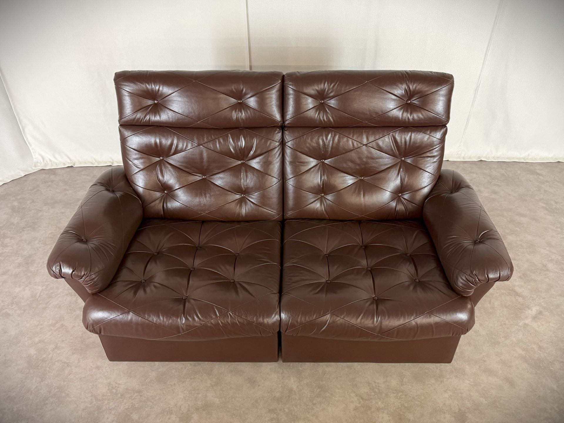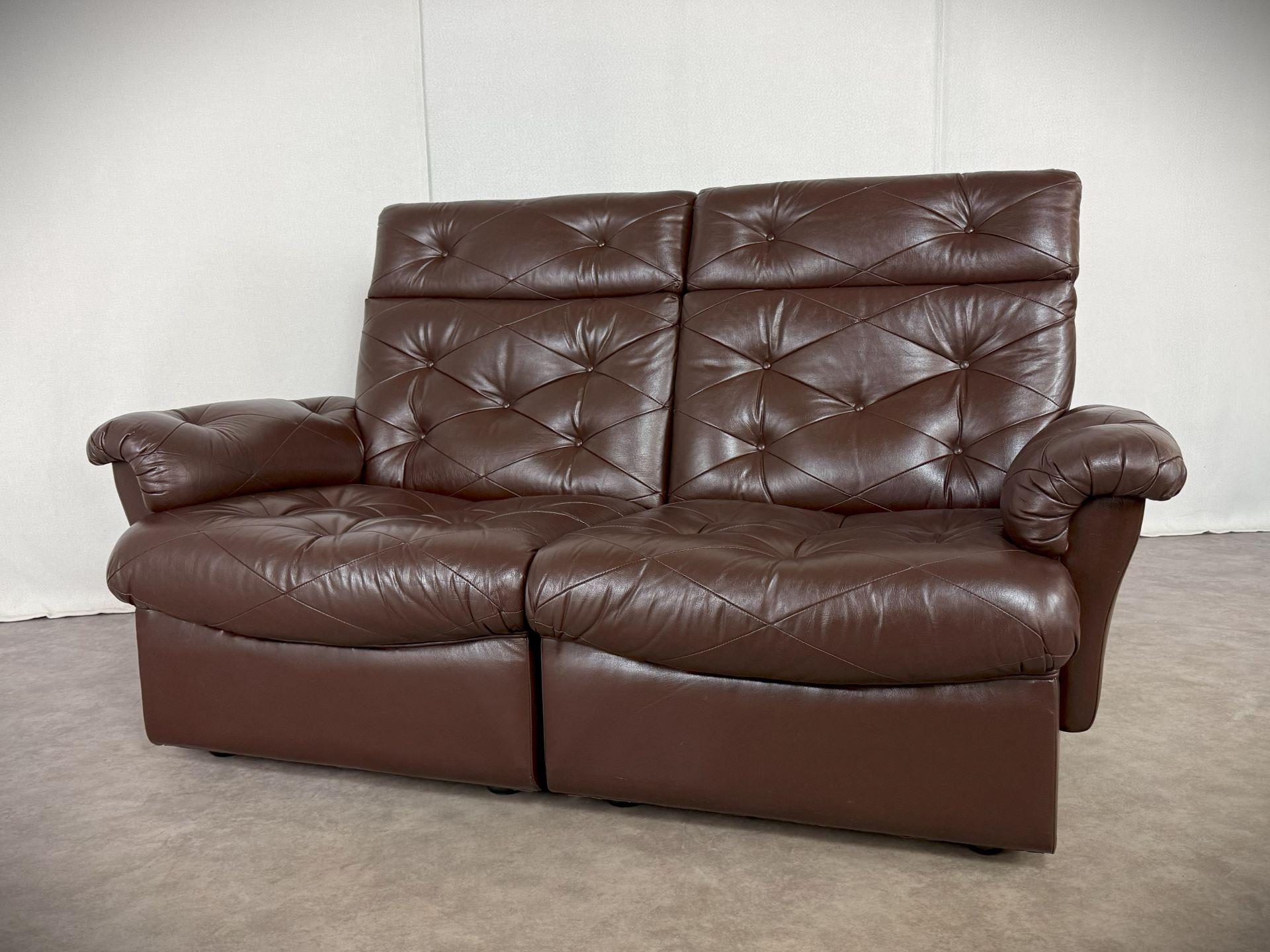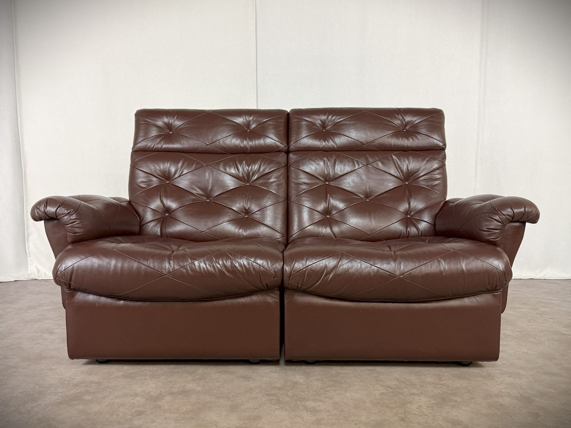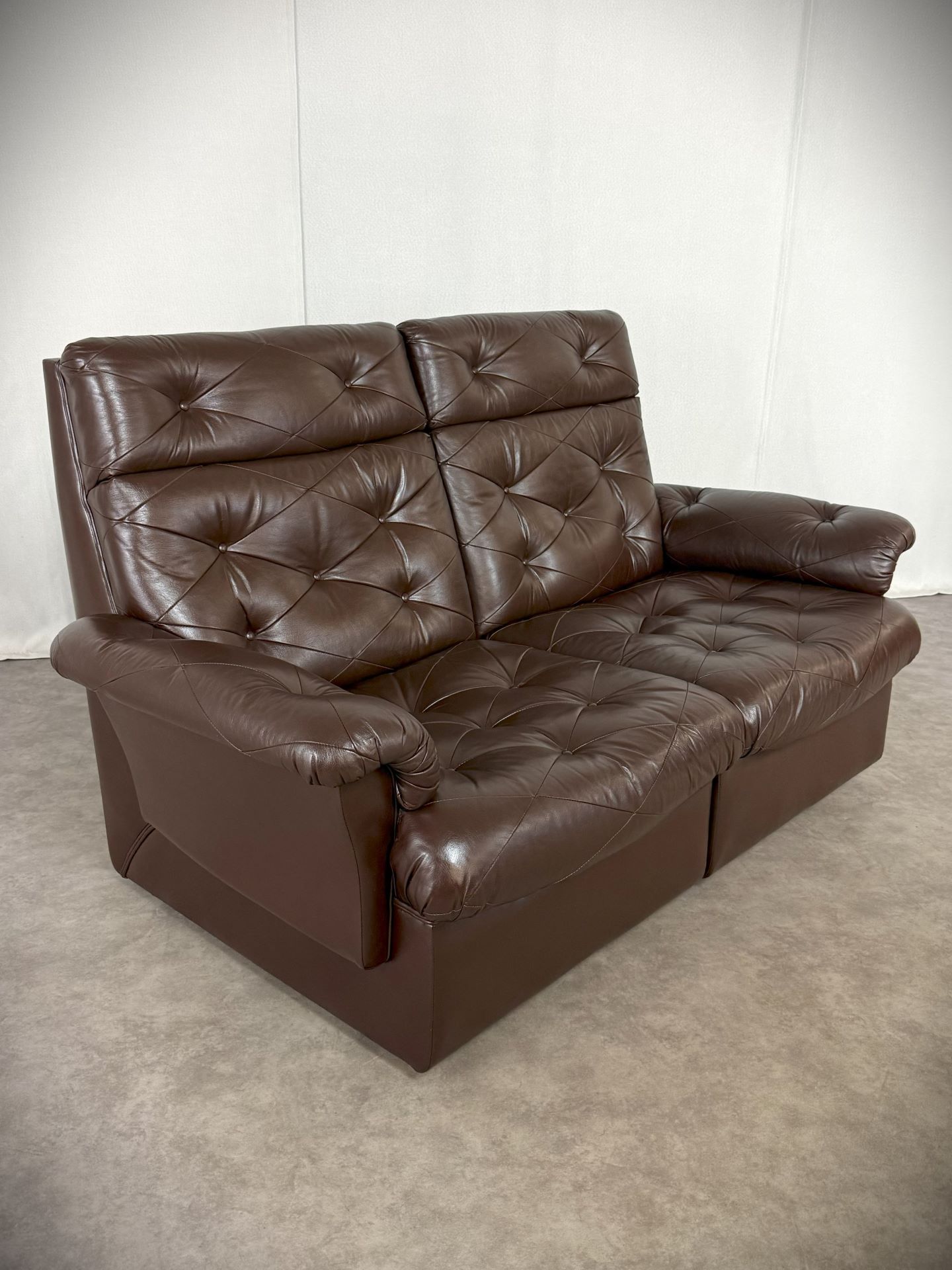 Vintage Zweisitzer Modulsofa – 1970er Jahre Space-Age Leder-Set in Schokoladenbraun!