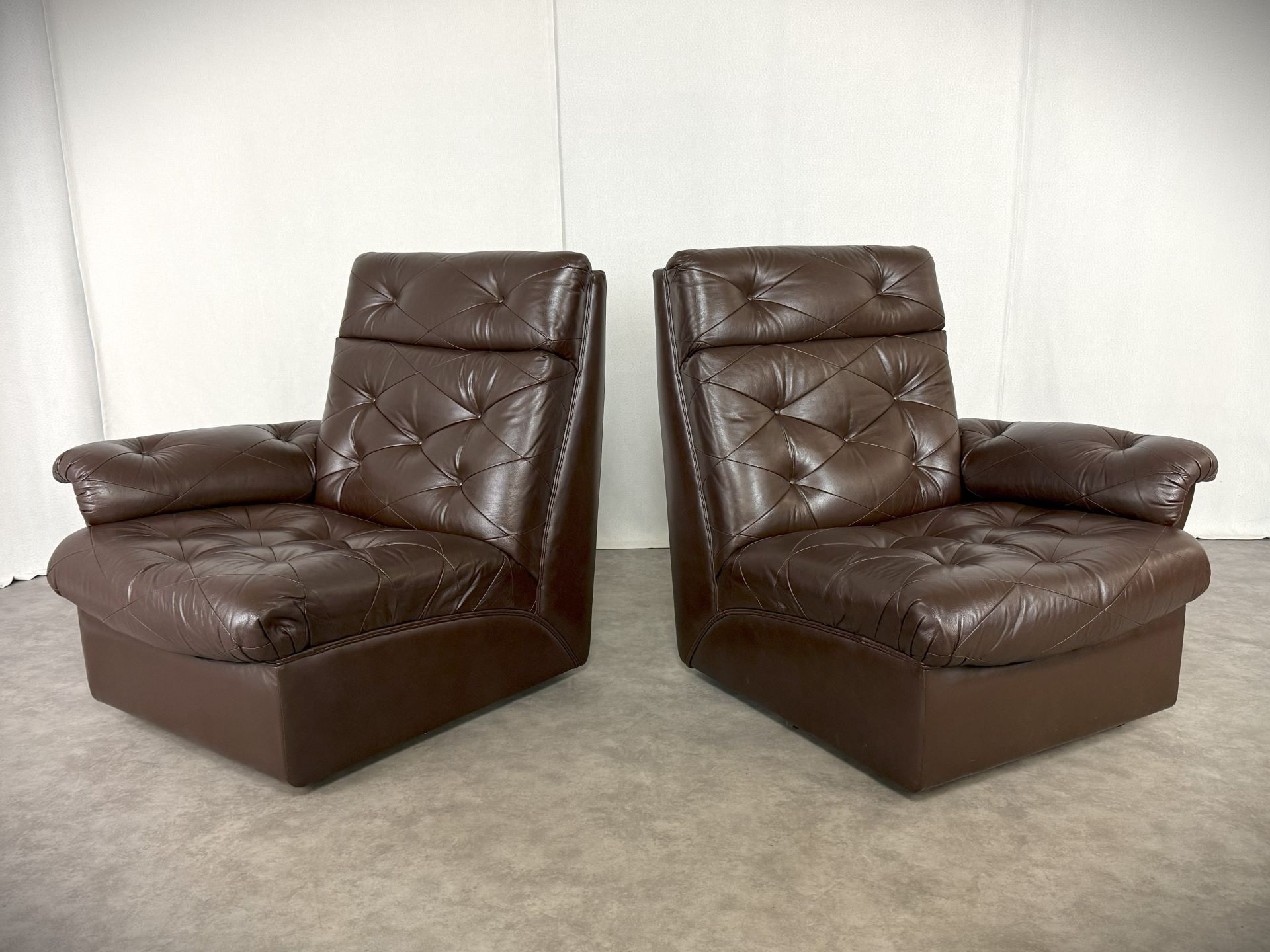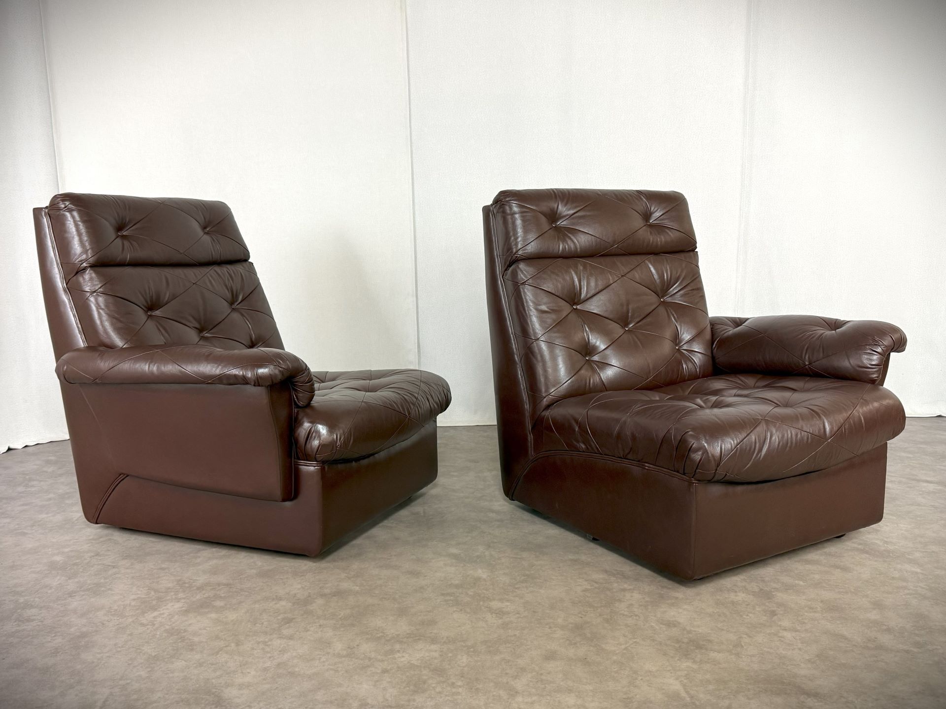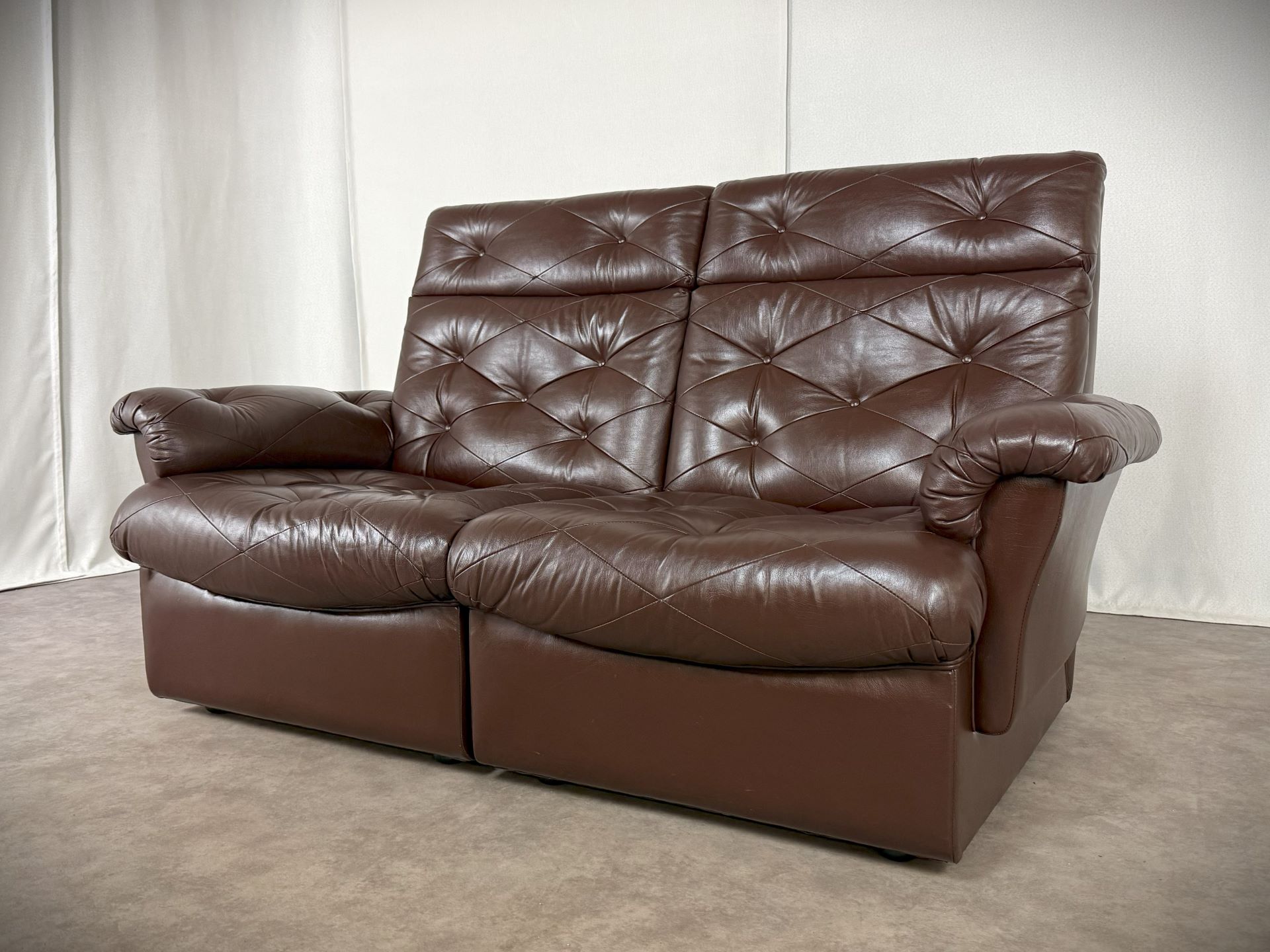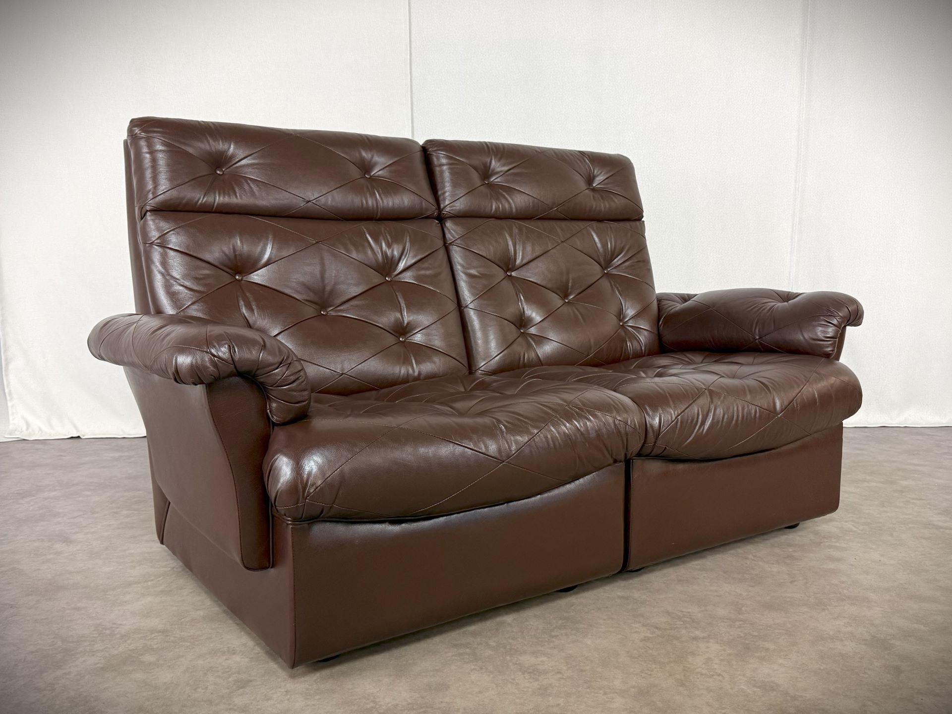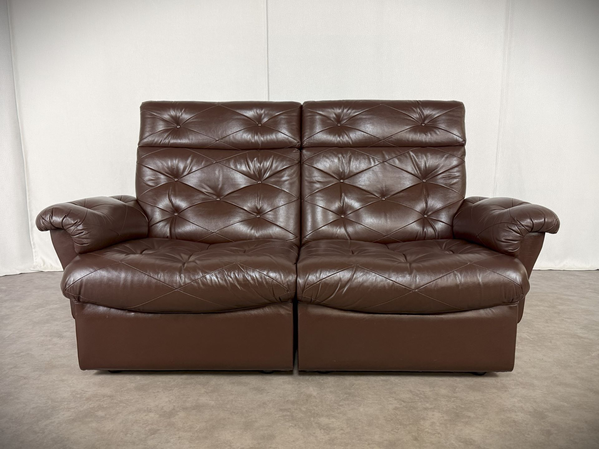 Vintage Zweisitzer Modulsofa – 1970er Jahre Space-Age Leder-Set in Schokoladenbraun!